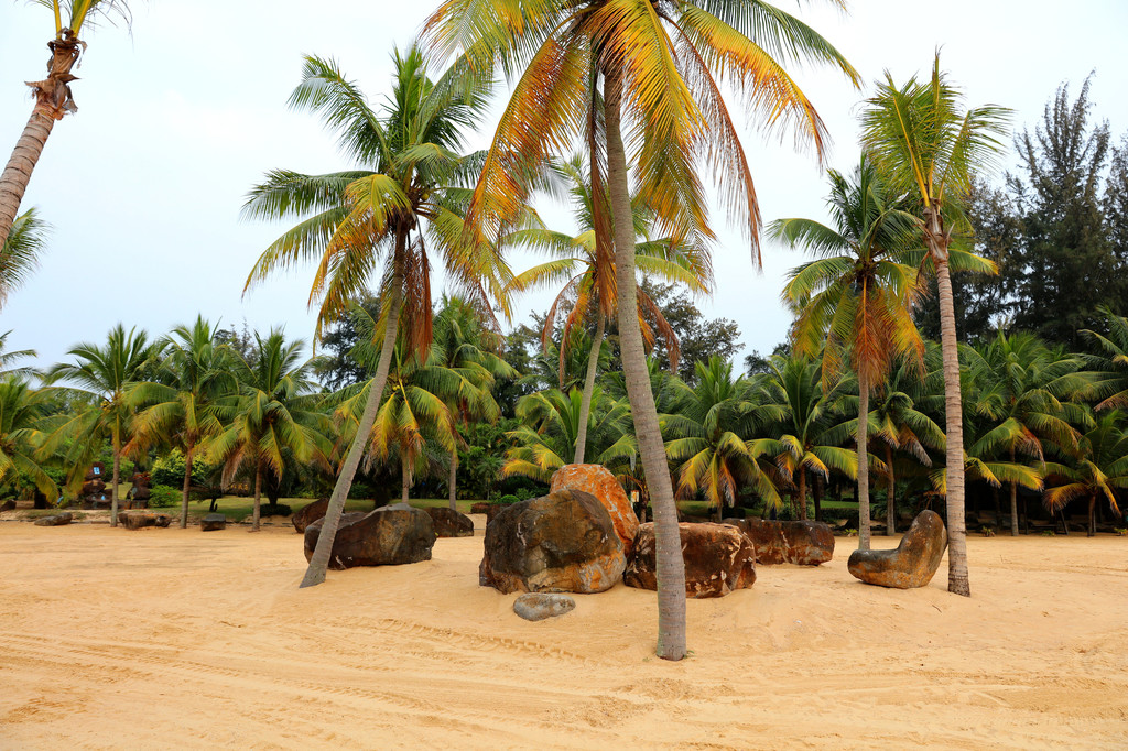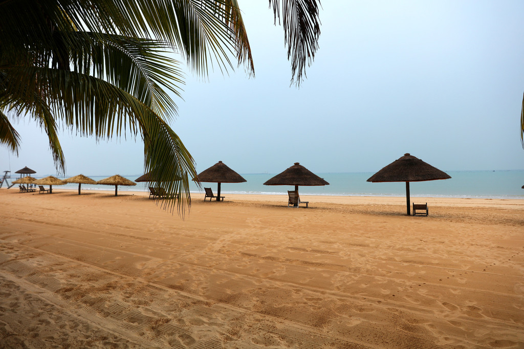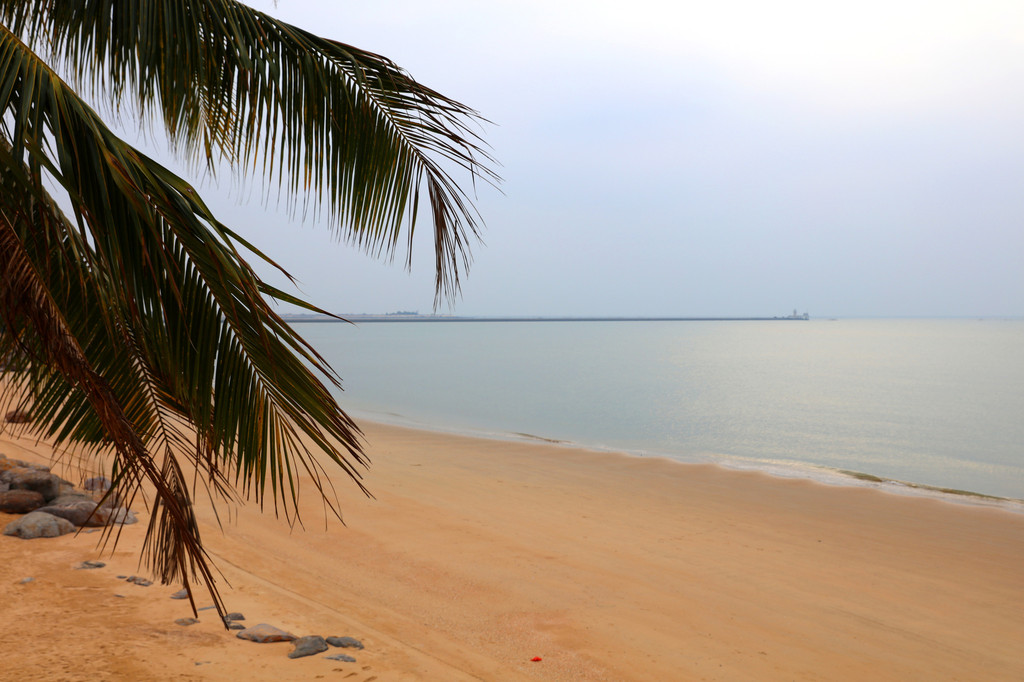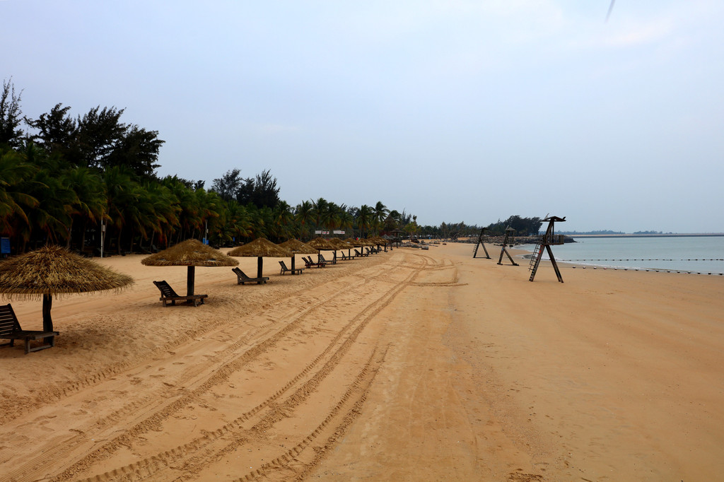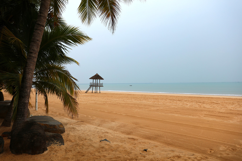 离开雷州古城,驶上了G15沈海高速,平时在家上班总要驶过一段沈海高速,领教过几乎拥堵常态化的G15高速公路上海段,今天驶上这段马上要到尽头的G15高速,一是觉得亲切,二是感叹在这里G15高速会变得如此空畅,真是同路不同命啊。在空荡荡的G15高速上只开行了短短一段又下了高速,这里的道路真不敢苟同,基本都是村道等级,道路狭窄,七转八弯穿行在田野与乡村间,好在路上的车不多,从另一方面也可以看出这里的经济发展水平。一个多小时后我们来到了位于雷州半岛西海岸北拳半岛的乌石镇、国家中心渔港乌石港对面的一个月牙型小半岛上的乌石天成台度假村,这里号称是中国西海岸最美落日观赏地,湛江的“马尔代夫”,进度假村要10元/人的门票,如入住的客人办入住后会退回门票费。办完入住,一看天气,估计看今天的日落概率是很小了,但我们还是迫不急待地奔向海滩。这片海滩有个美妙的名字,叫金沙滩,长达4公里。渐变色的湛蓝海水一波又一波地涌动着,信步于海滩上,脚下踩着柔软而细腻的纯白沙滩,身旁是与天相接的清澈海水,海边一长排空空的木椅,木椅后面是一排被微风吹的裟裟作响的椰树,此刻仿佛整个世界只有天、海与你。登上木竹构架、亭面薄草盖成蘑菇状的亭台,极目海天舒,心胸无比开阔。