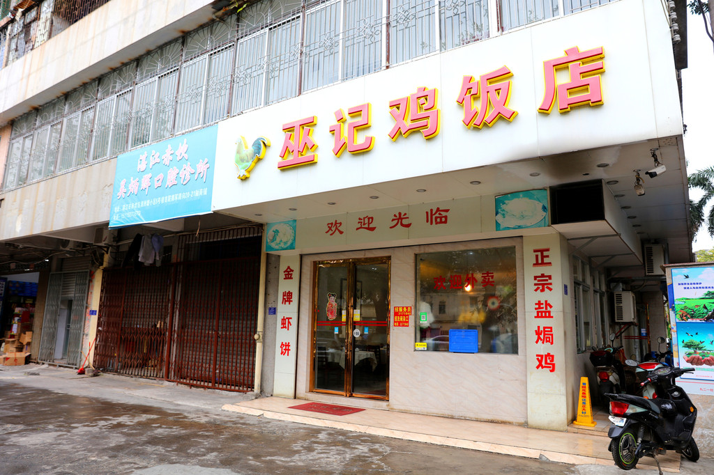 赤坎老街的道路上,或许没有那种灯红酒绿的繁华感,但是每走一步都能感受到一股悠然自在的舒适感,因此也特别适合工作之余来放松一下。赤坎老街周边的商业也比较繁华,老街里面各种小吃和时令水果都在一定程度上代表了湛江的特色,好多名字也非常当地化,只有吃了才能弄明白大致是什么东西,挺有意思的。我们来到深深融入到三民路片区居民的日常生活中,水井里的水仍旧清澈和甘甜、《隐秘的角落》里曾出现过的水井头,如今,这里的网红水井头油条豆浆店搬家了,围着水井头吃早餐的人也散了,不过意外的在水井头旁吃到了非常好吃的绿豆粽子。因为赤坎老街这里也是充满了烟火气的地方,到处是美食、小吃,我们把午餐也放在了这里,广东人喜食鸡,湛江的白切鸡也十分美味,来到门面不大却好评如潮的巫记鸡饭店,小店里坐无虚席,赶紧点了白切鸡、虾饼、上汤芥菜,葱姜牛梅皮,白切鸡的鸡肉嫩滑,沾上一点咸香的沙姜,简直就是鸡中一绝,虾饼虾肉饱满弹牙,其实他们家的盐焗鸡也非常不错,点单率很高,但我们只是二个人,再点实在是吃不下了。