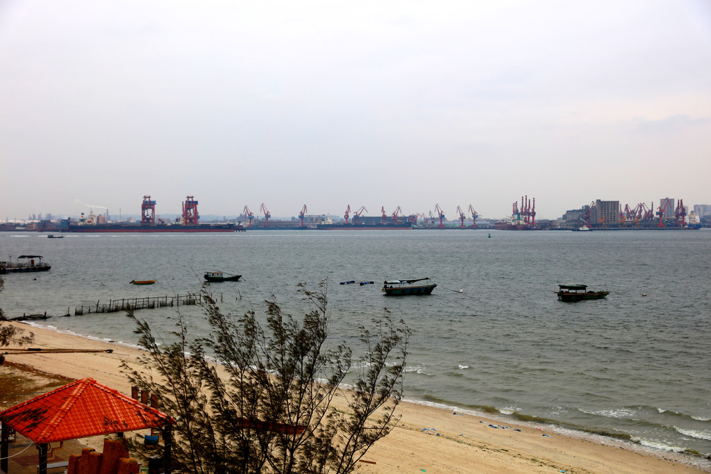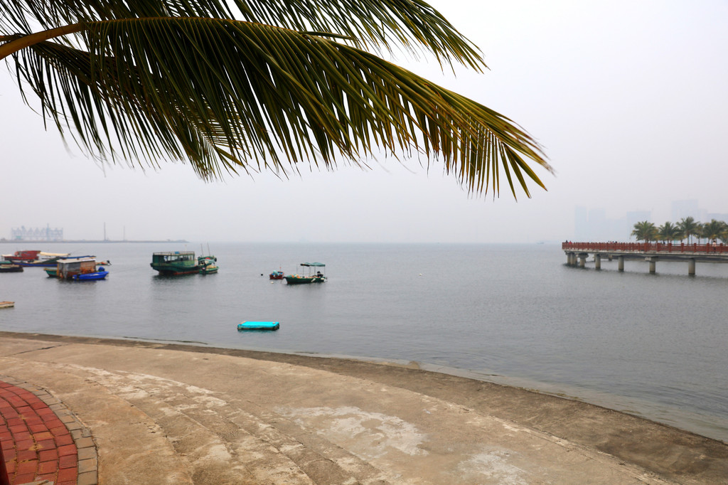 我们在湛江的最后一天,先是悠闲地在海滨宾馆喝了一顿品种丰富、口味正宗的粤式早茶,然后来到与宾馆一墙之隔的渔港公园,这里是典型的椰风、白沙、南国海滨风光。湛江市区的海岸从北至南分别有金沙湾观海长廊、渔港公园、霞山观海长廊、海滨公园、渔人码头等构成,因此在湛江随处都能看到“面朝大海、春暖花开”的景象。