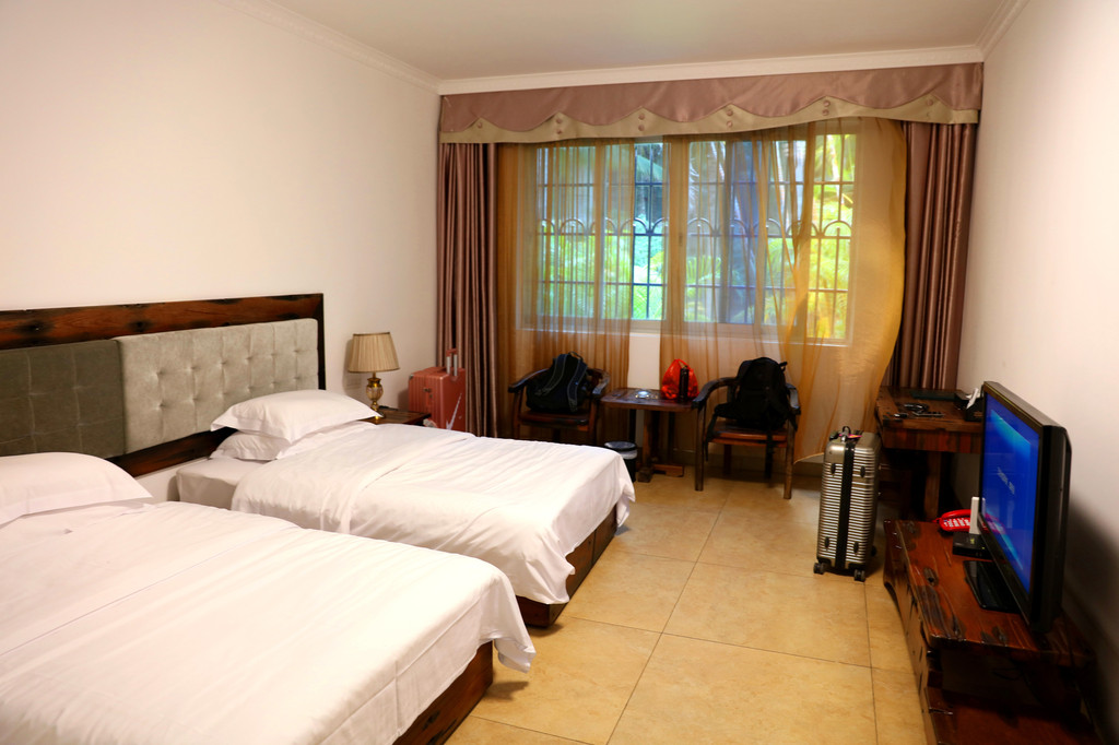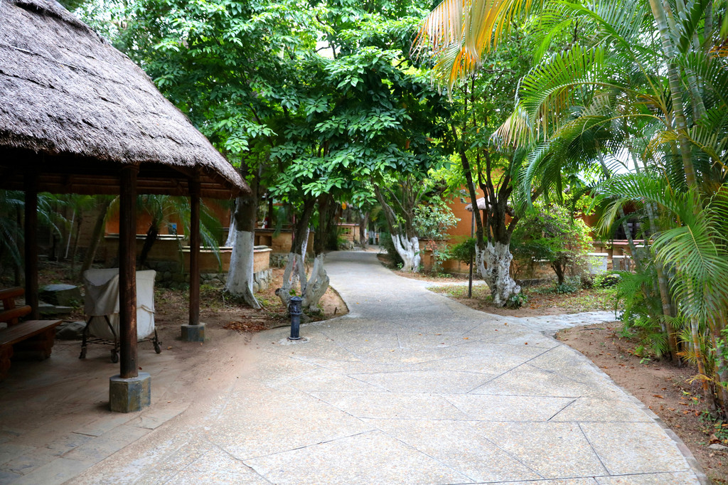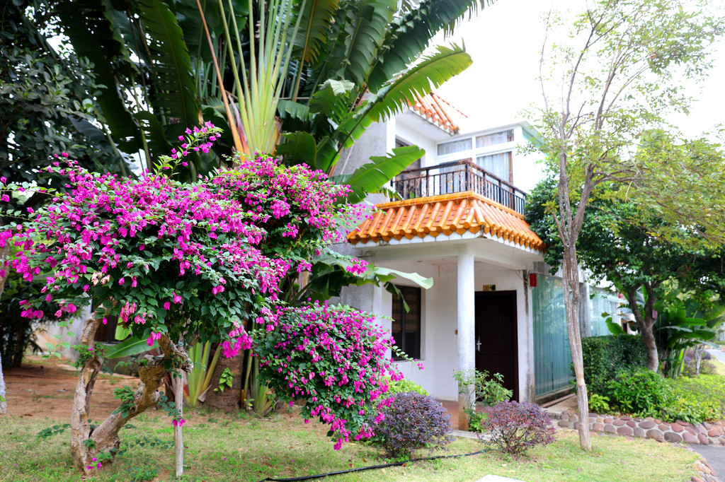 我们入住的雷州天成台度假村号称是中国大陆西海岸最佳日落观赏处,我们开车二个多小时来这里入住就是想来这里看日落的。来后发现这里可谓是人少景美的小众秘境,天成台并不是那种很洋气的度假村,平时的天成台度假村游客不多,整个度假村全部是由别墅式建筑组成,室内带温泉的客房比较贵,我们入住的是不带温泉的,一幢小别墅由二个独立的客房组成,环境没得说,四周鸟语花香,绿荫掩映,但室内设施略显简陋。除了看日落,对于爱拍照、爱吹着海风发呆的朋友们来说这里是个不错的地方。大部分游客来天成台度假村最重要的事情是看日落,因为天气不好,我们非常遗憾地与日落无缘,如在天成台度假村观日落不想走远就呆在度假村旁的海滩就可以,如自己有车,可去也属天成台度假村范围、但距离几公里外的拦沙坝尽头的灯塔处,据说这里是观日落的最佳地点。如果不住在度假村,进去需要买10元/人的门票,如住宿客人办入住后会返还门票费,目前去天成台度假村交通是短板,从高速公路下来还要走很长一段七转八弯狭窄的道路,因此来这里如果不是自驾会很不方便。