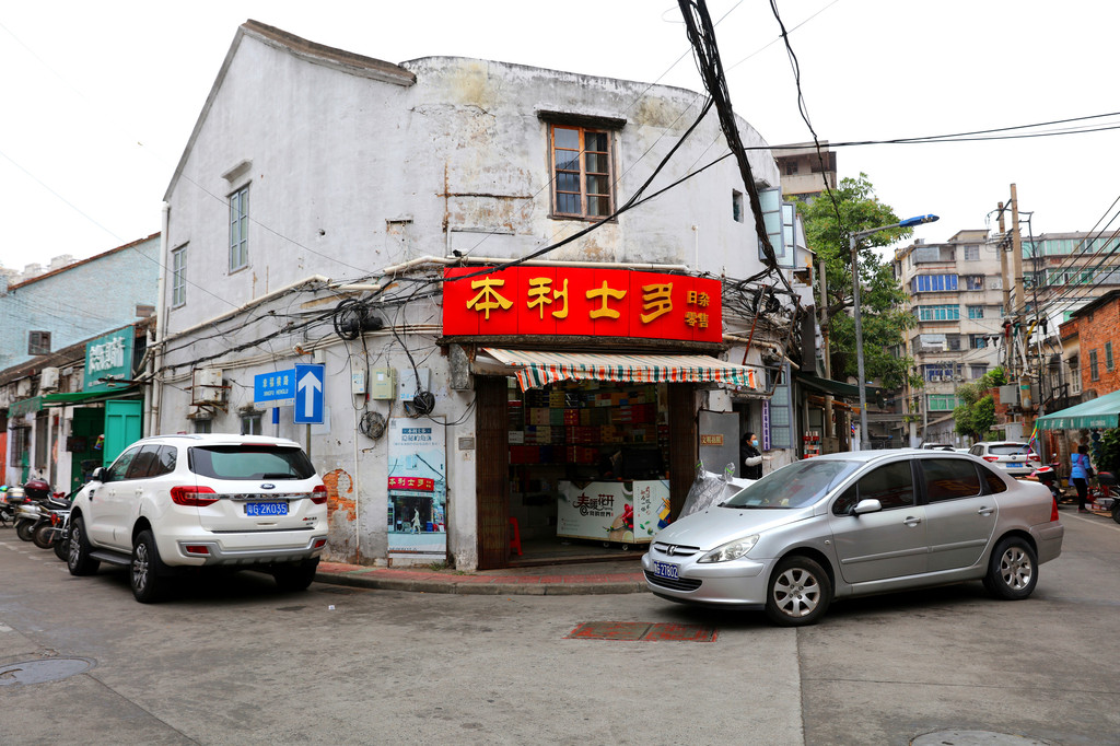 脱不了俗我也跟着《隐秘的角落》打卡赤坎老街,第一站就是位于赤坎永宁路与幸福横路交叉口的本利士多店,可能是店主觉的来打卡的人太多影响生意了,店门口横停着一辆小车,让你拍照打卡不舒服,既然人家都觉得烦了,那我们拍个照赶紧走人了,赤坎老街远不止本利士多日杂店和朱家天台,其实赤坎老城本身就是广东省湛江市历史最悠久的地域,也曾是湛江商贸最发达的地域之一,这里有广州湾商埠,有大同街、三河街、三民路、九二一路等一大片古街,构成了赤坎的古典美,特别上镜,虽然看上去有些陈旧,甚至有些破败,但这丝毫不影响我们对它的欣赏,我们要的就是这个味。赤坎在清末时期是个小渔村,被法国强租。1925年后,许爱周先生从法国人手里取得填海权,开始填海造地,填出了现在三民路等商业用地。当年的新城,如今变为老街,街上的老建筑在安静地诉说着自己的变迁,我们行走在这些青石街看老房子,不只是欣赏建筑,还让自已的心安静下来,让我们对这繁华中的静谧有了更深刻的认识。