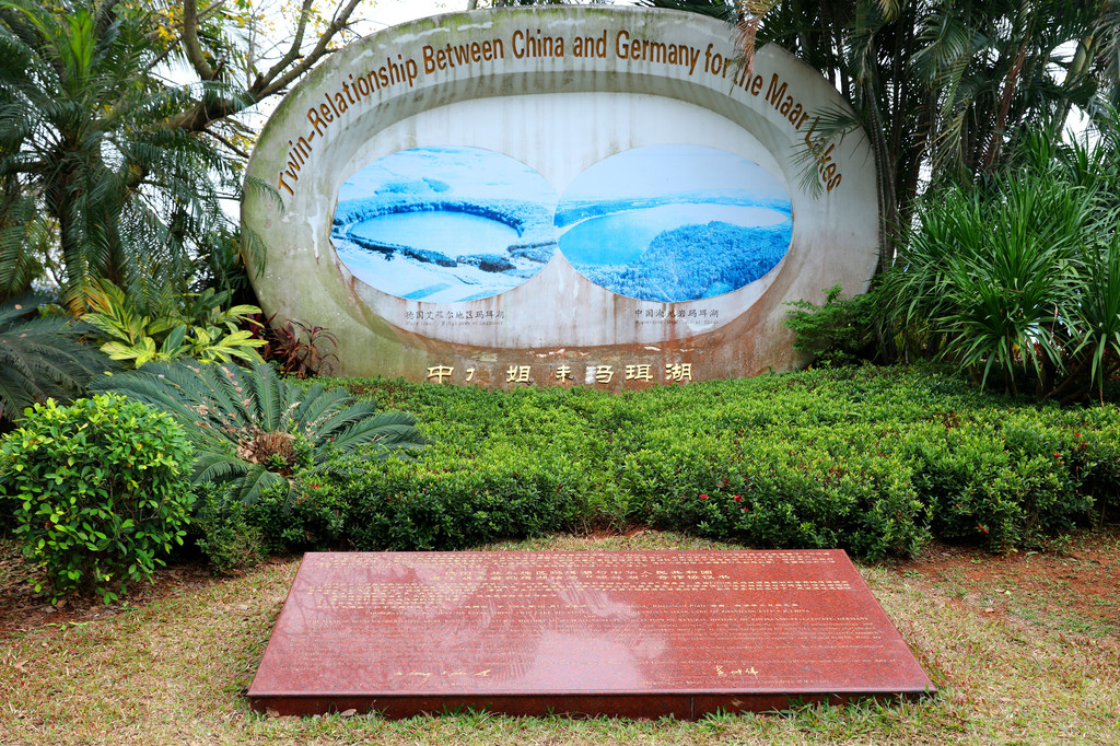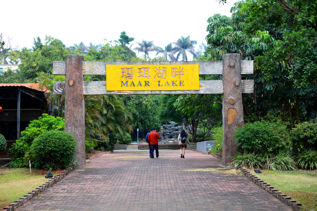 中午退房后我们前往大名鼎鼎的并充满着神秘感的湖光岩,这湖光岩在地质学家眼里是一个极具研究价值的火山湖,也是世界上仅有的两个玛珥湖(另一个在德国)。不过在我们普通游客眼里真看不出这湖有什么特别,在我们江南、湖光潋滟的景色随处可见,这湖光岩除了人少、安静、适合徒步外景色真的太一般了,湖光岩门票五十元,绕湖一圈大约七公里,如不想步行,可乘电瓶观光车,每人二十元,停靠四、五处固定车站,可自由上下。