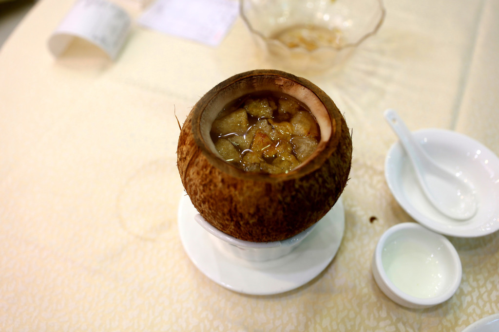 回到湛江市区我们入住了号称是湛江“钓鱼台”的海滨宾馆,确实这称号不是虚的,首先这宾馆的环境没得说,整个宾馆就像是一座热带风光的园林,一幢幢别墅式建筑被绿树鲜花环绕,而当年作为湛江市政府的招待所,国家领导人及外国领导人来湛江首选的入住地也必定是这里,海滨宾馆的餐厅也是湛江喝早茶、吃粤菜最正宗、档次最高的场所,当地人办喜事,喝早茶也喜欢来这里。晚餐我们就在宾馆里的醉海楼餐厅,餐厅的装饰风格看上去就比较高端,餐厅的粤菜味道也正宗,当然价格也和宾馆的档次相匹配的。吃粤菜我们想当然的配粤酒,比起历史悠久、大名鼎鼎的粤菜,这粤酒真的是个短板了,好像拿的出手的粤酒真不多,石湾玉冰烧算在广东及东南亚出名的,石湾玉冰烧是中国白酒第六种香型——“豉香型”白酒的唯一代表产品,国家优质酒和中国历史文化名酒。具有玉洁冰清、豉香独特、醇和细腻、余味甘爽,最大的特点是“缸埕陈酿、肥肉酝浸”,但我们还是不习惯这个味道。