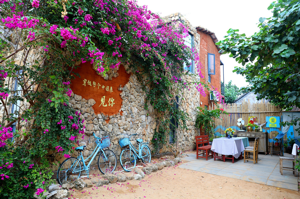 徐闻在中国地图上看是雄鸡的脚趾,是中国大陆最南端,在地图上很容易被找到,但现实中又很容易被忘却,每年有无数人经徐闻登陆海南岛,但他们只把这里当驿道,却从未发现这里隐藏的秘境。中央台《魅力中国城》的拍摄和地理意义上的地标点,让这几年来徐闻、来南极村打卡的人陆续多了起来。我们的第一站是徐闻南极村艺术家部落,这里本名是放坡村,一个与苏东坡有关联的渔村,据说苏东坡流放海南,在此登船,故得名“放坡”,最初来的是一位叫连君的外地艺术家,后面来了一帮,把一个渔民嫌弃的旧村子捣拾成了度假的天堂,现在的艺术家部落除了自家住,还有对外营业的民宿,这里的民宿也成了广东十大最美民宿。