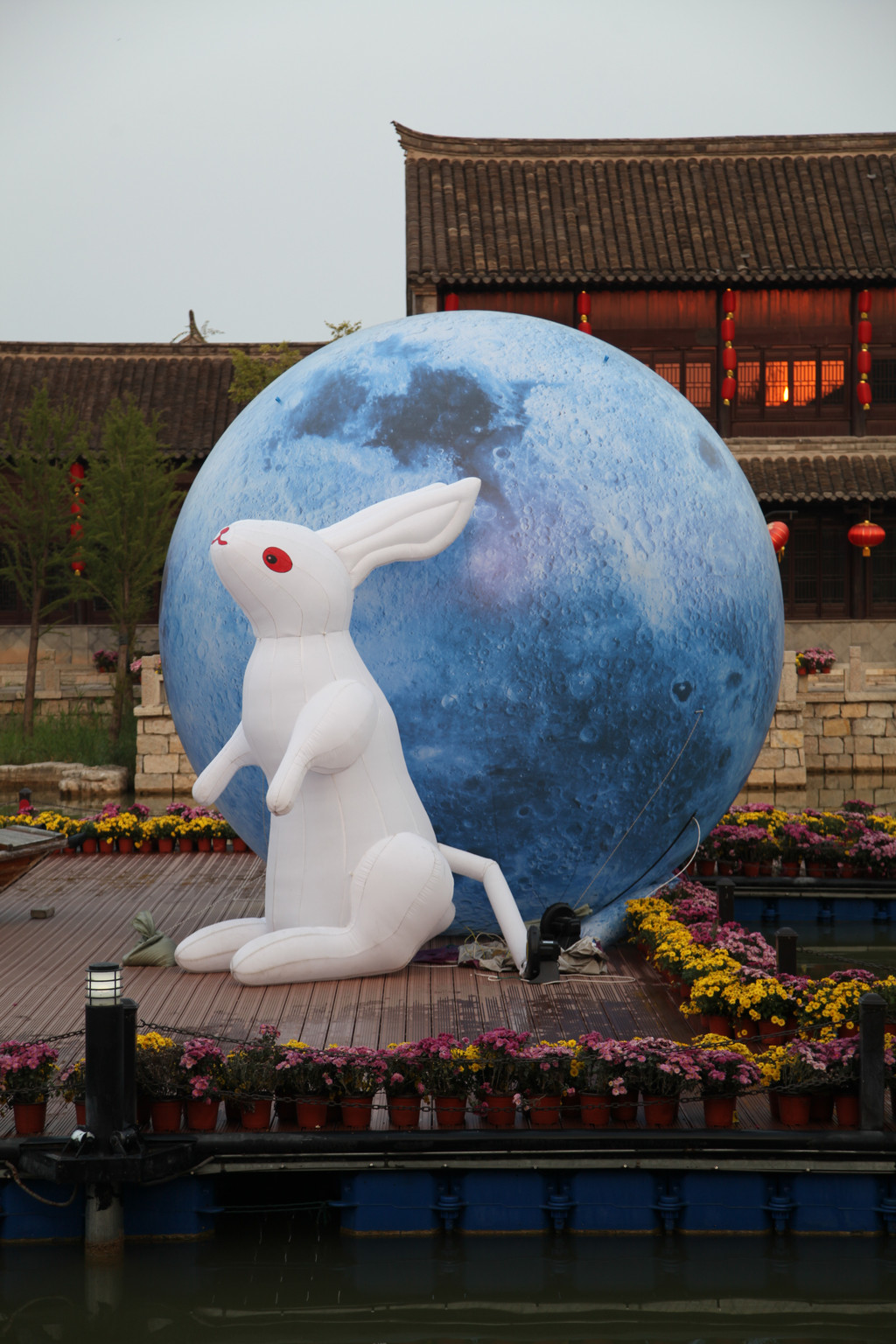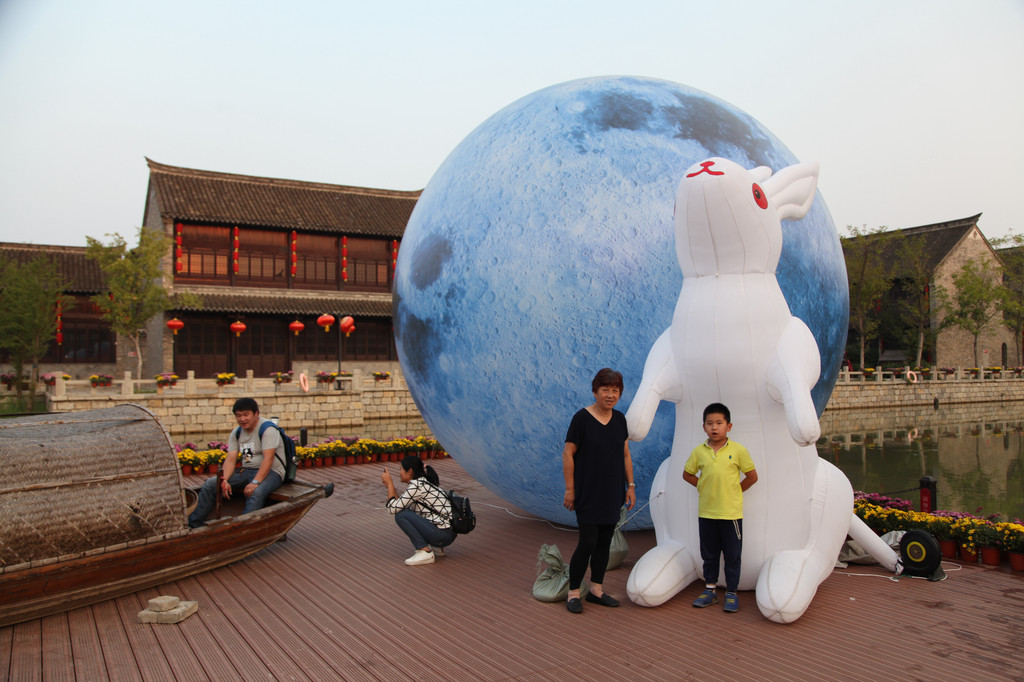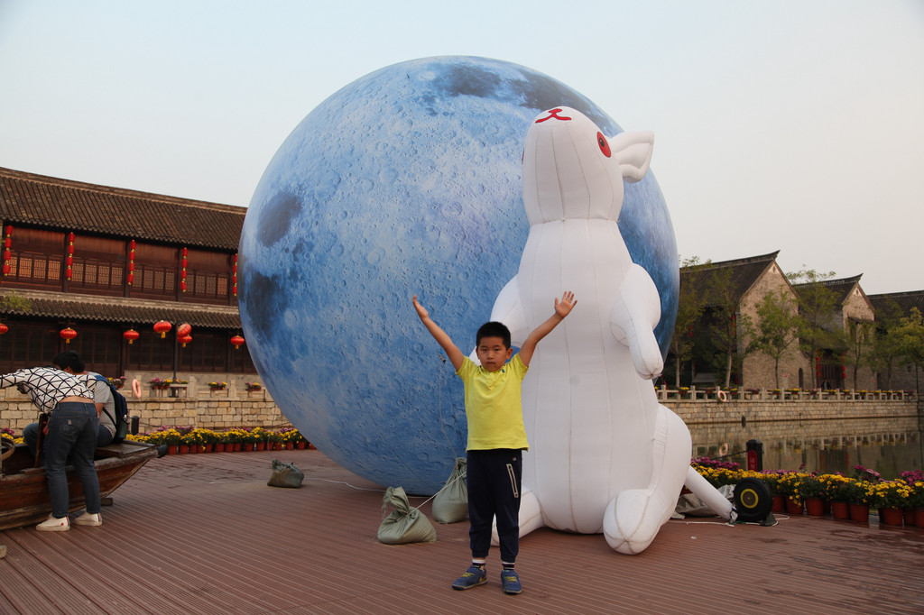 潘安水镇,头顶五彩纷呈的彩色气球,吉祥喜庆读过十一长假