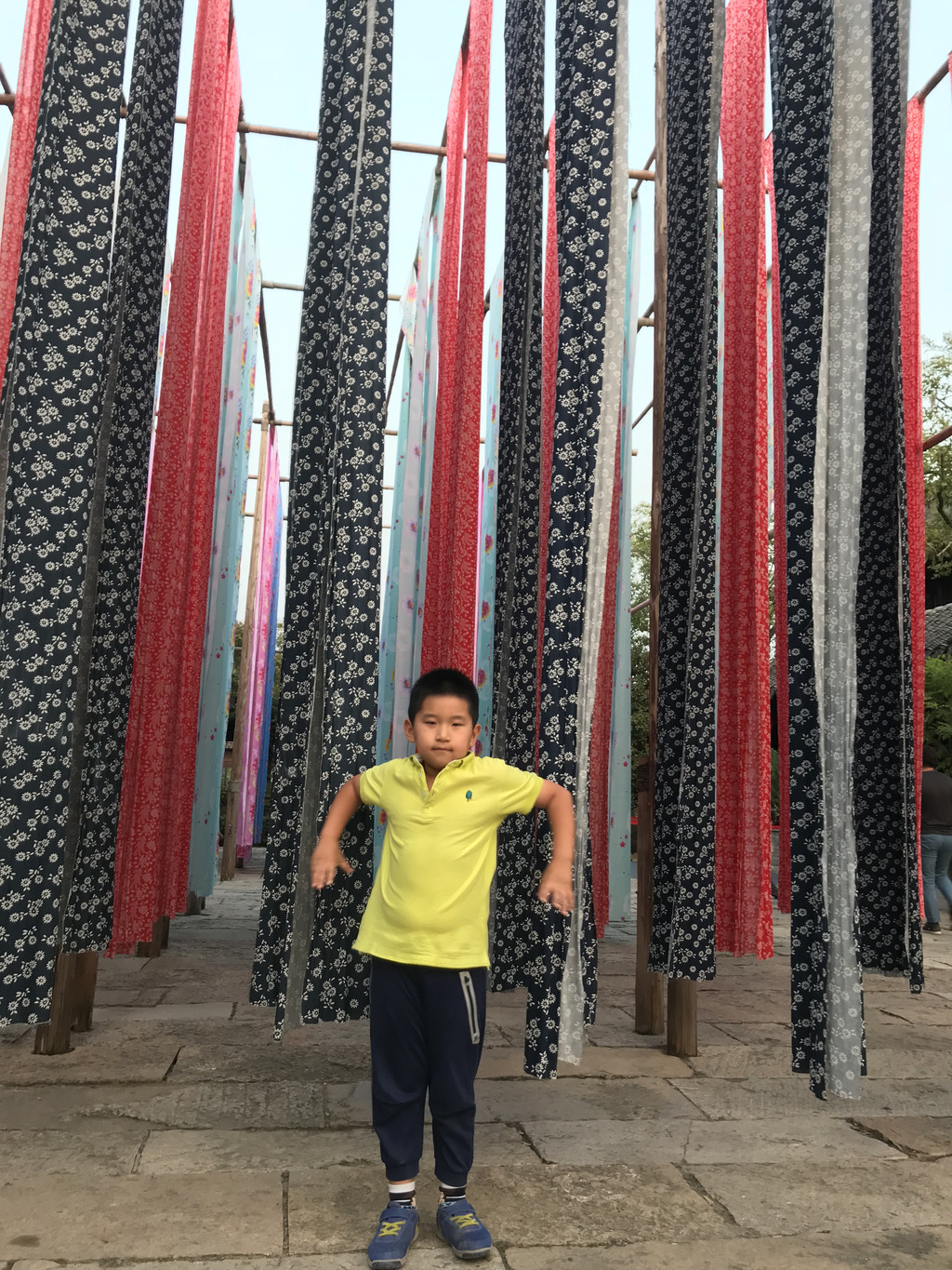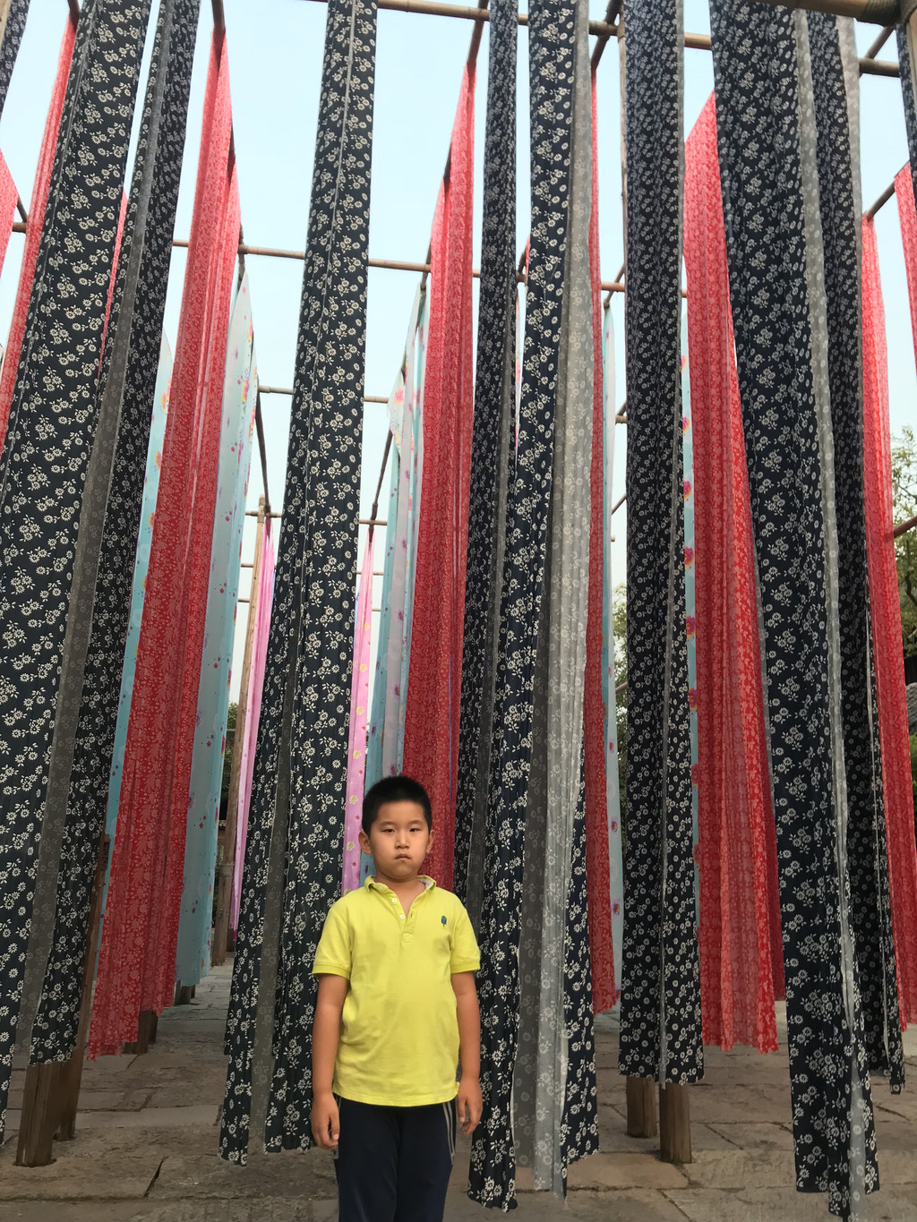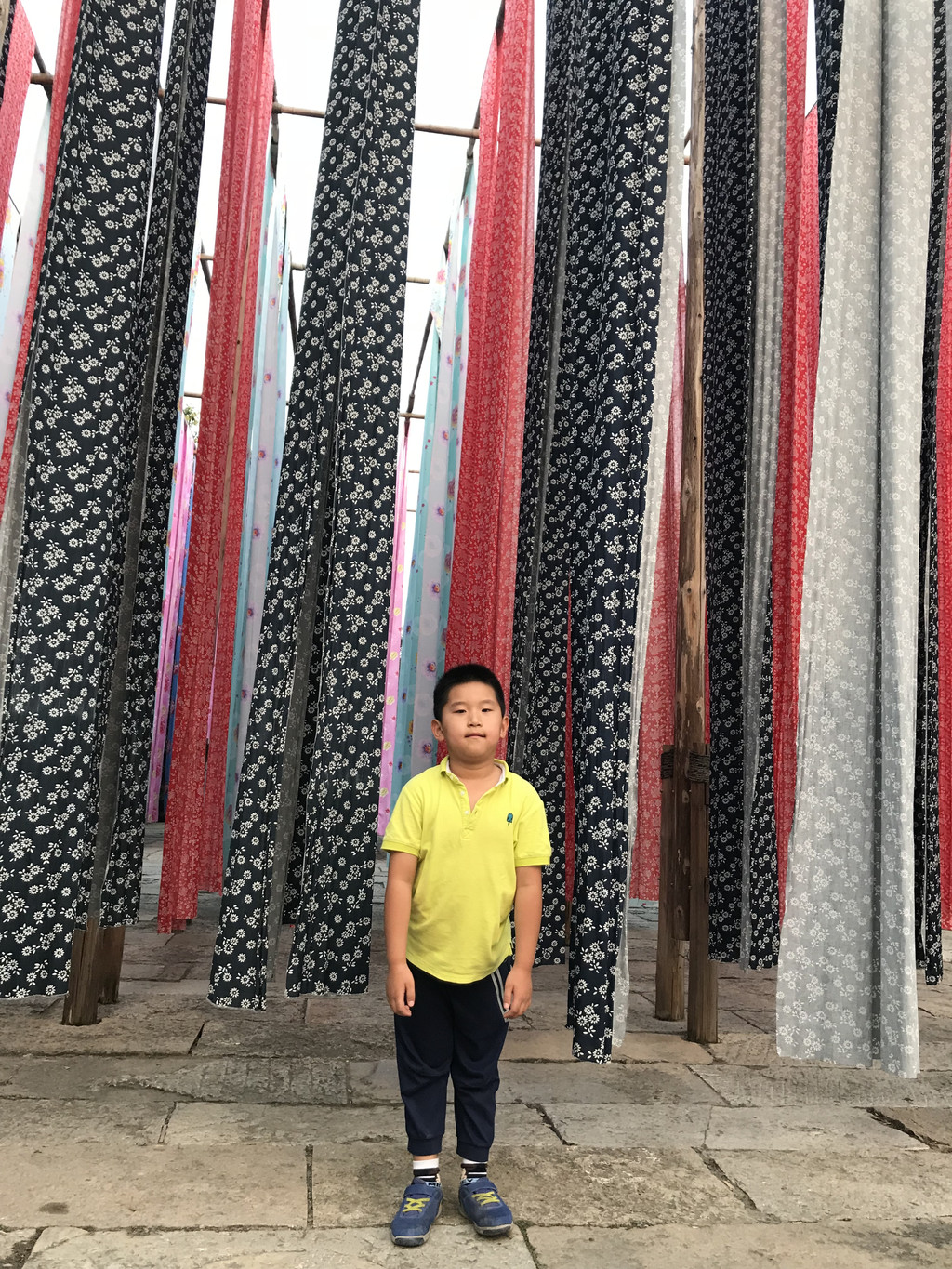 少年徜徉于染布坊里,这里的布匹,蓝的像海,红得如花,千年布艺,发扬光大