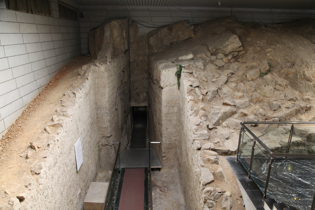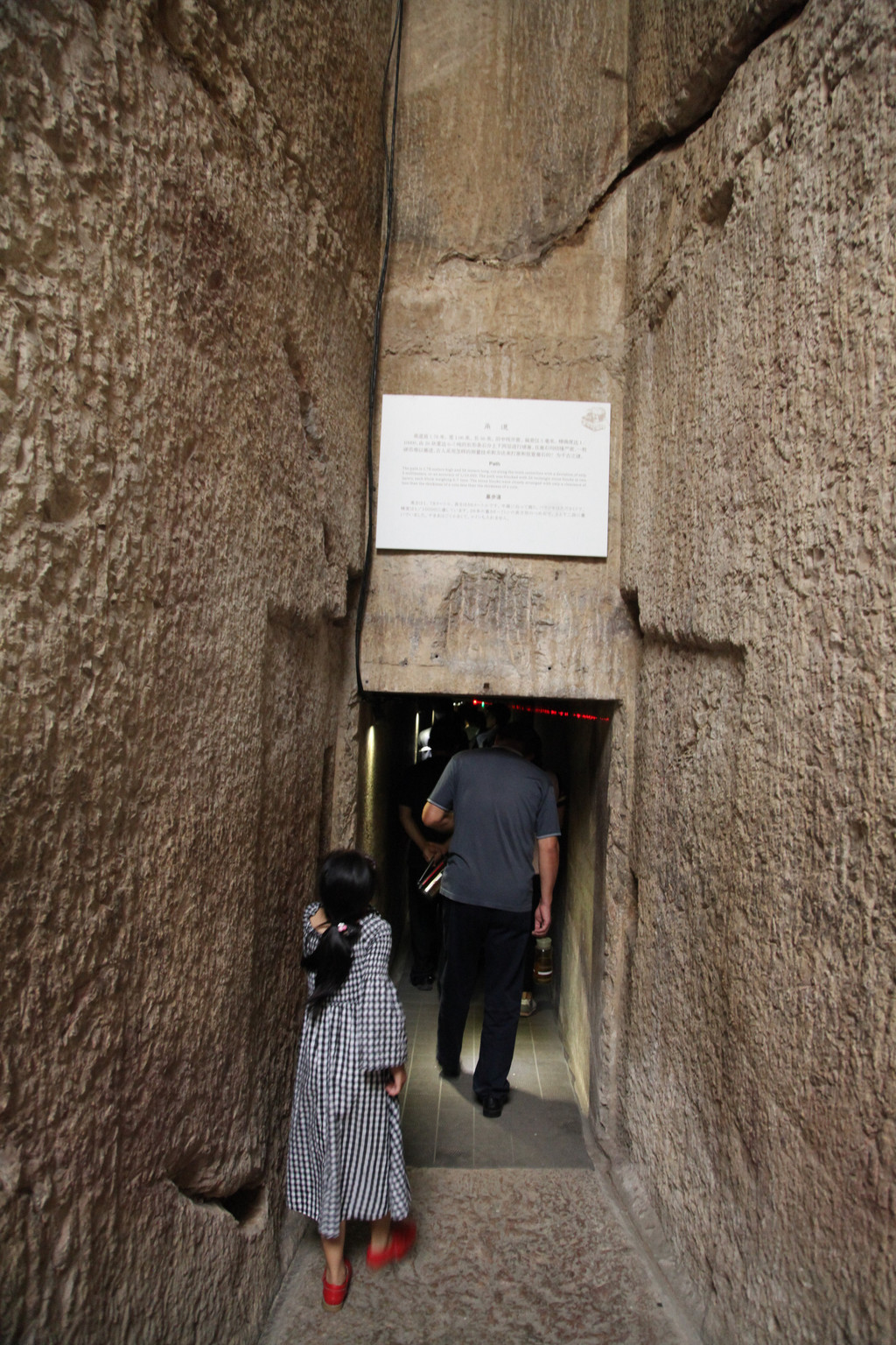 依山开凿的墓道,两边笔直上下,垂直下挖