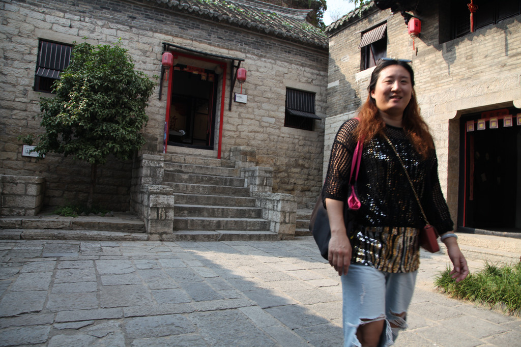 水镇不大,一个小时可以走遍。正逢夕阳西下,晴空丽日,阳光照在我们身上,暖暖的。龙太子带头,领着我们跟着他的路线走,沿着石板小径,把古镇挨个兜圈儿看了个遍。