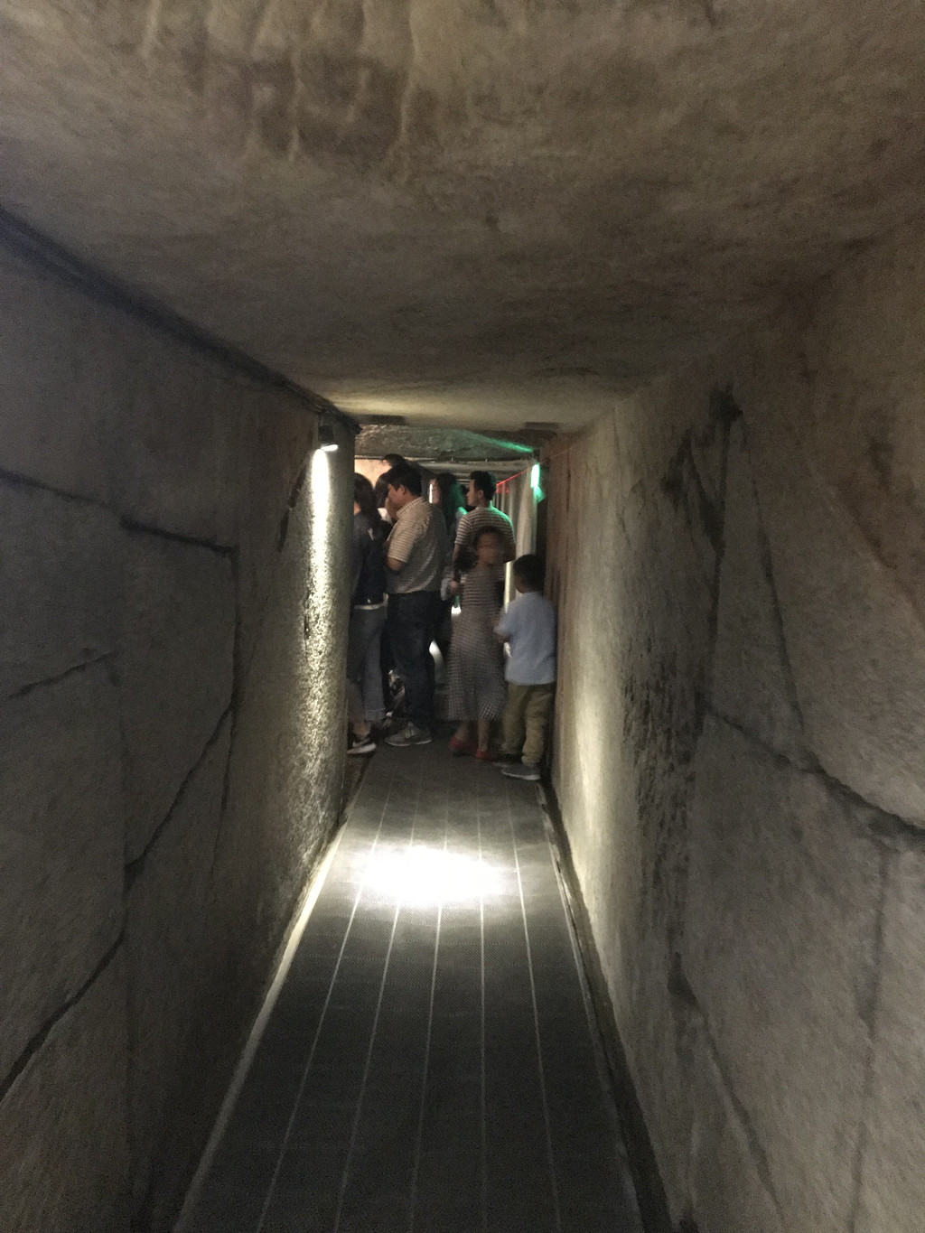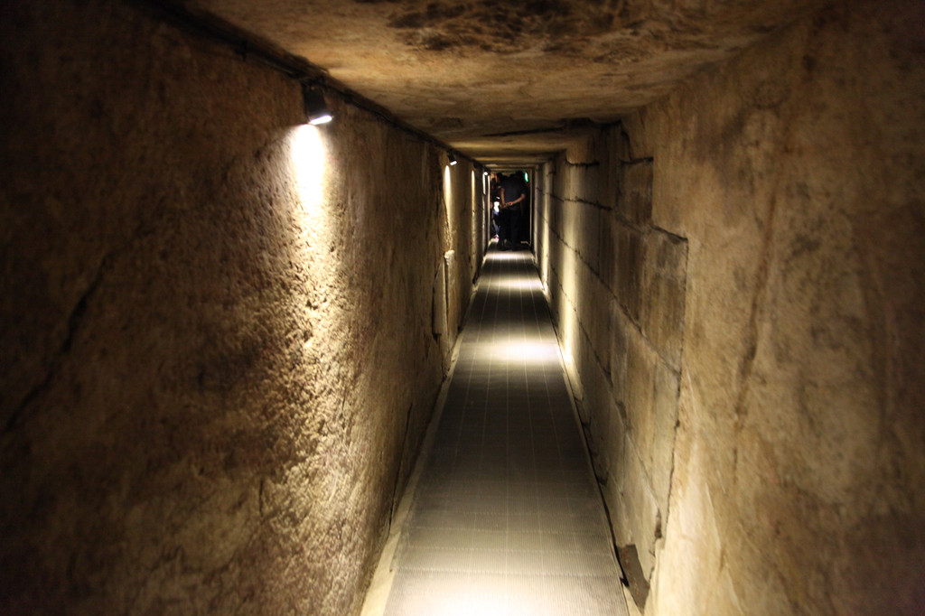 进入龟山汉墓,沿着长长的墓道一路往前走,顶部那条开凿出的笔直而平整的墙面,十分光滑而严整地平行延伸,有如神迹。