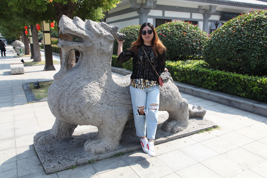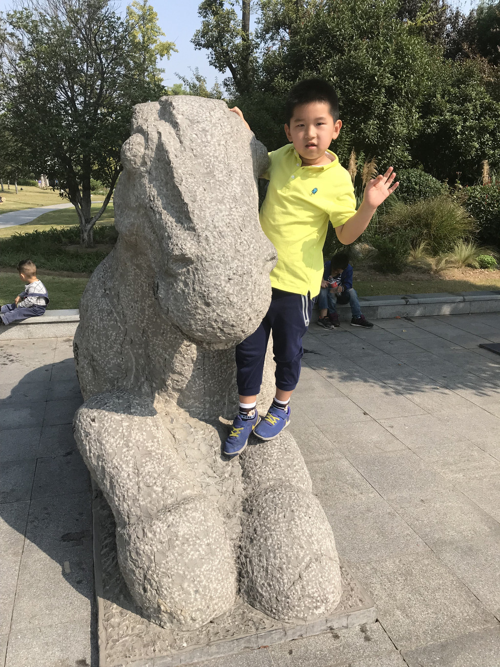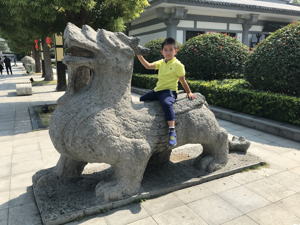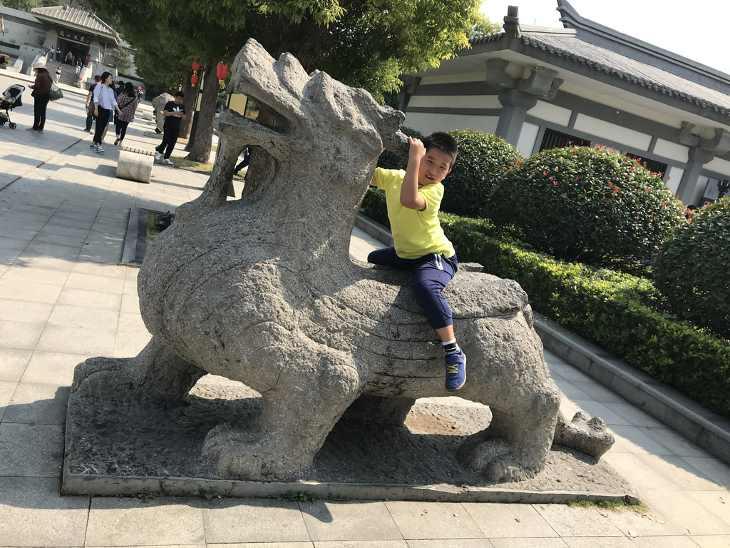 龙太子有点怵,让我放他下来,不要骑着拍照