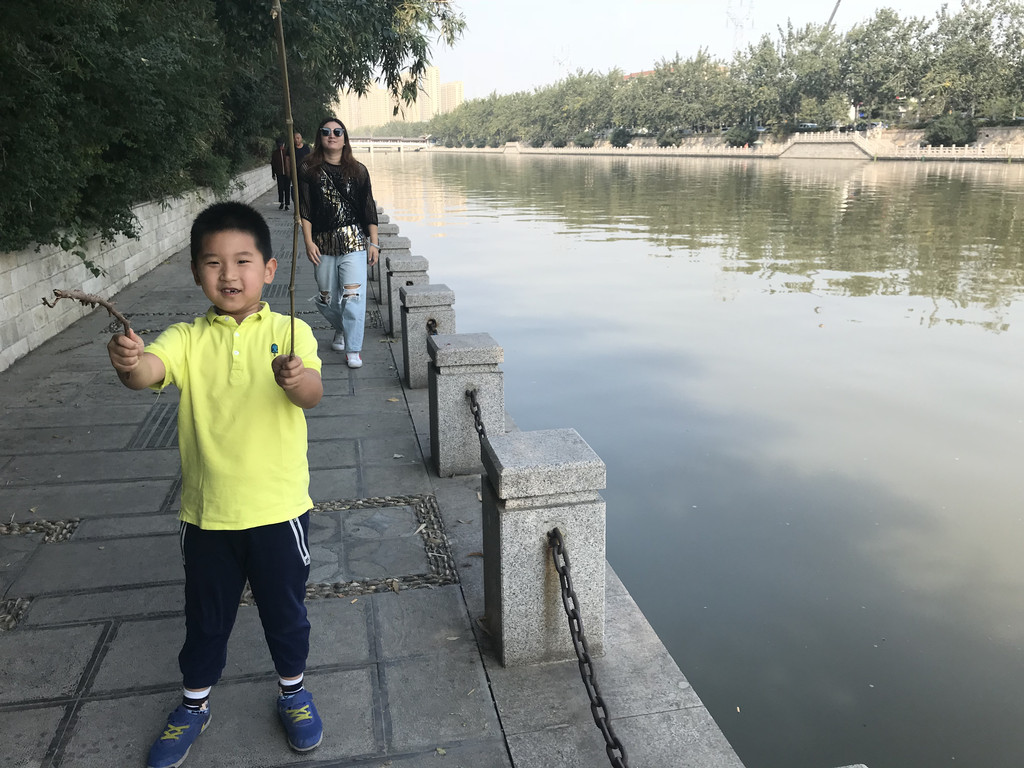 俊俏少年,凝神屏气,端看美丽水乡潘安古镇