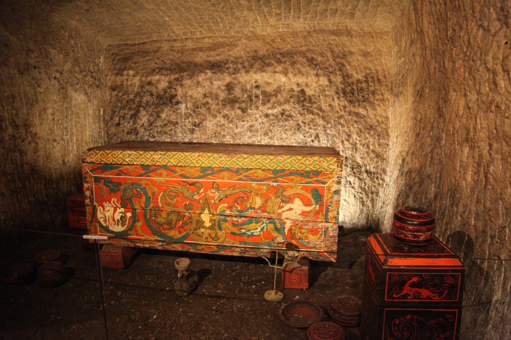 甬道由26块重达6.7吨的塞石分上下两层封堵,塞石排列十分紧密,连一枚硬币也无法塞进。陵墓南为刘注墓,北为其夫人墓,两墓均为横穴崖洞式,俨然就是一座宏伟的地下宫殿,是西汉中期诸侯王墓的典型代表,也是全国特大级别的汉代王陵之一。陵墓工程之浩大,雕琢之精细,气势之雄伟,堪称中华一绝,世界实属罕见。