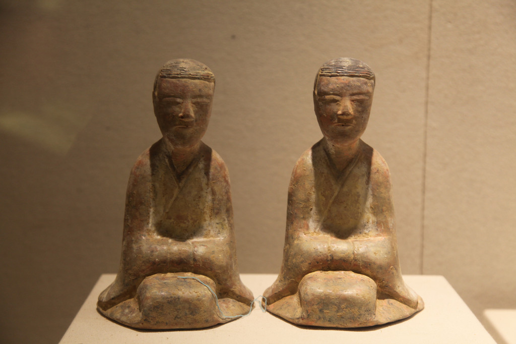 汉族女子人物俑,品貌端庄,仪态大方,双手相携,典雅温婉