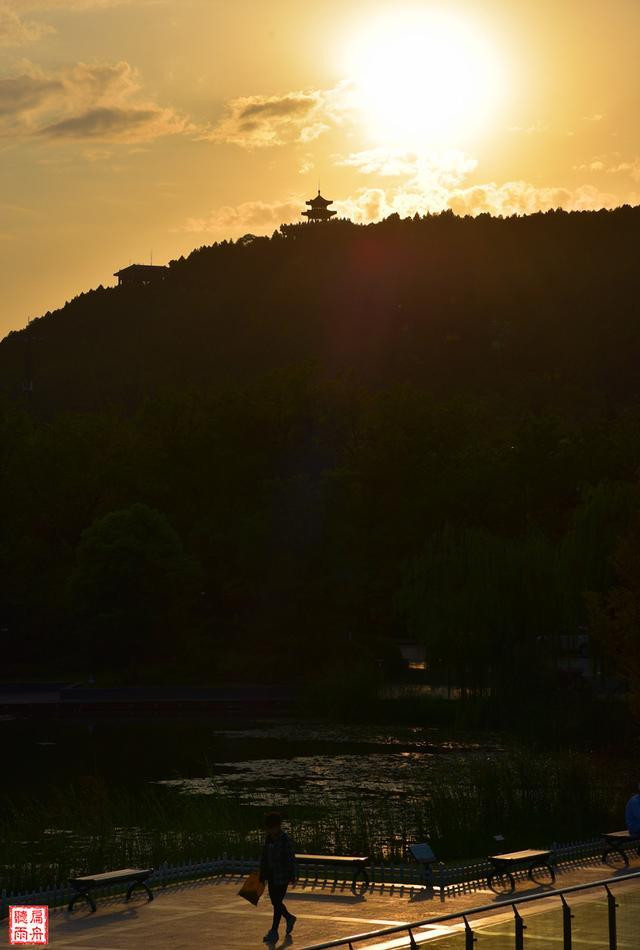 站在名人馆后面的高台上,向西望去,云龙山上夕阳西下,云霓霞光,金色灿烂。