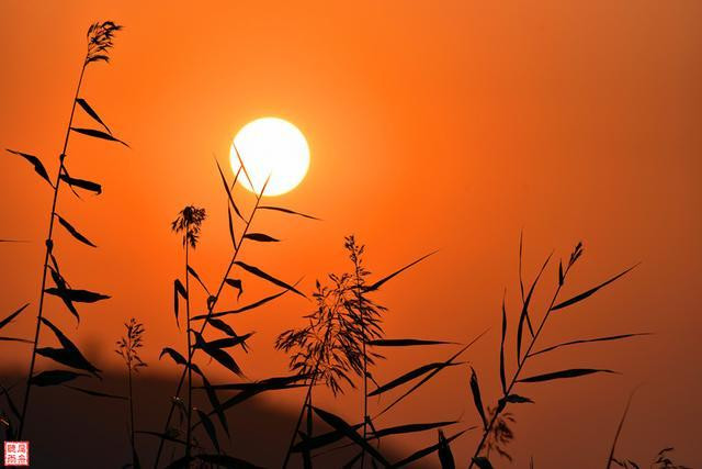 芦苇摇曳,托起一轮晶莹灿烂的宝玉。