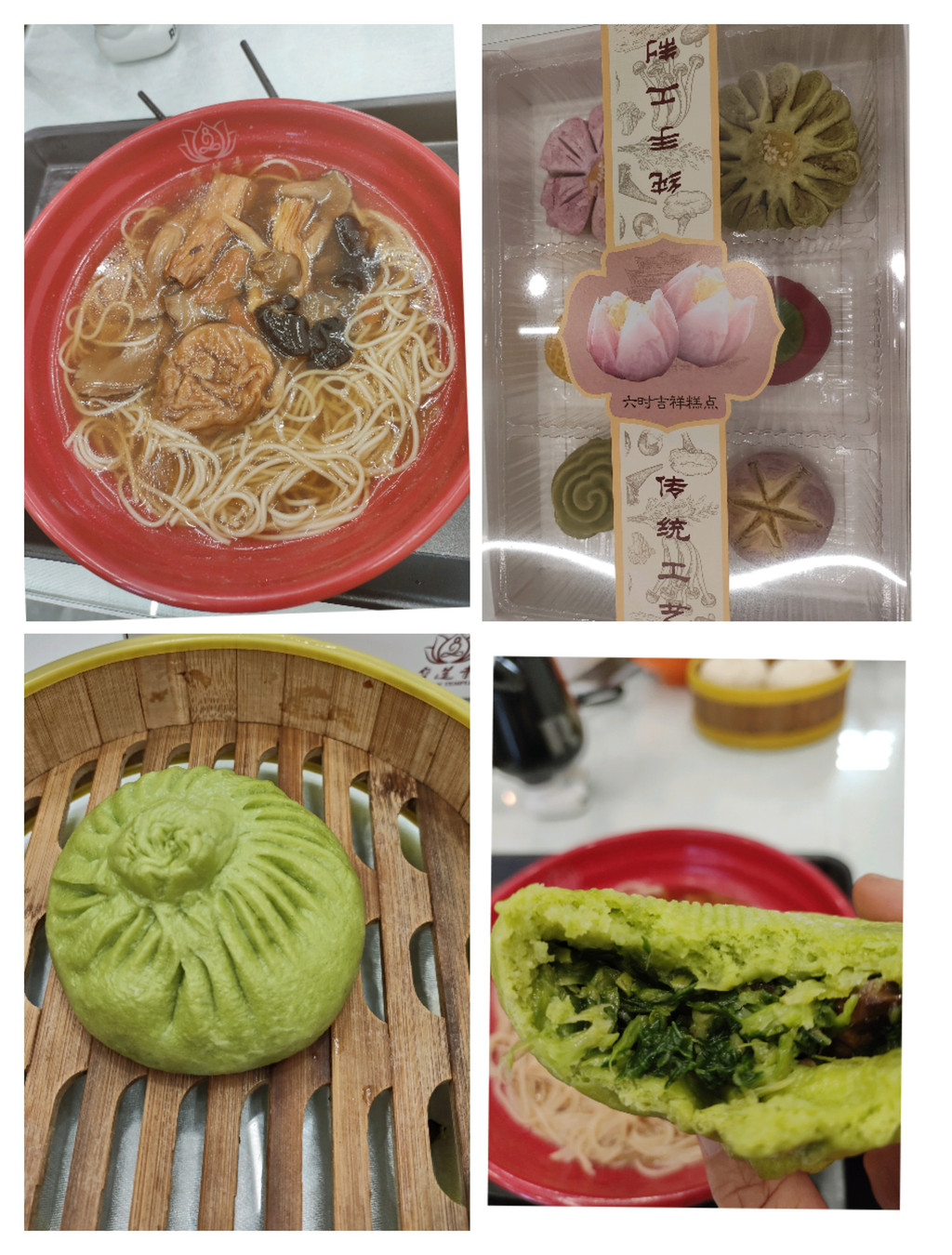 九点半到了宝莲寺,看素面馆一家门口排了长队,于是想晚点错过早餐会不会人少些,事实证明,早午餐一起人更多。他家三个门脸,山门两边一边一间,然后往东侧往停车场方向还有一家素斋馆,因为排队人多,服务员就引导一部分人到了素斋馆。因为人多,想体验清雅的环境是没有了,面也没有配菜了,不过还是不错的,至少能吃出是熬制的蘑菇汤,素包也比较清淡,我最满意的是素果子,造型好看,价格不贵,38元一套,回来一尝还特别好吃,不腻不甜,推荐。