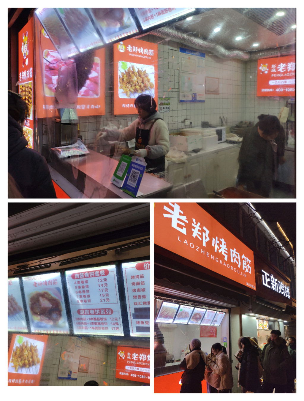 四串一饼也算是徐州烧烤的一个特色了吧,从博物馆出来往户部山的路上正好路过这家彭城店,门口已经排了长长的队。四串一饼,烤肉筋或者配面筋,之前看了评论,准备纯吃肉,真是非常好吃。饼软软的,配上刚烤好撒了孜然辣椒的肉筋,真是一口下去满口生香,现在我打着字都有些忍不住要流口水啊。而且价格也不贵,12元一套,还可以配烤青椒。