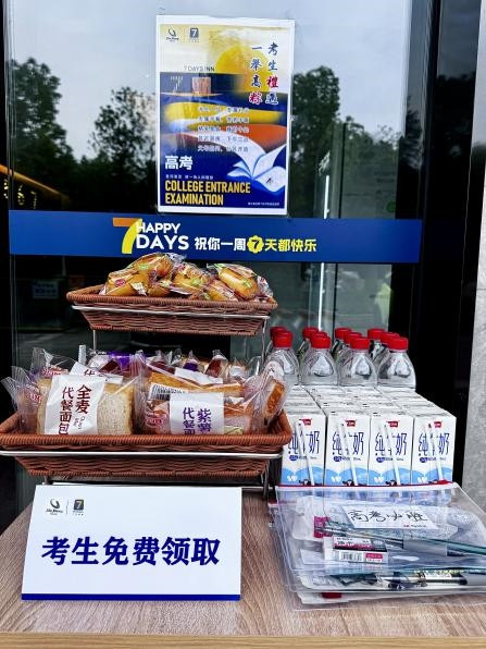 在确保提供高标准运营服务的前提下,店总及时根据特定时期推出定制化的服务措施。在6月高考的紧张时刻,7天优品Premium(新7天南京南站天印大道地铁站店)为考生免费提供代餐面包、牛奶和文具包;店门口悬挂着“金榜题名”的醒目横幅;店内装饰着激励人心的高考励志海报,营造出一种鼓舞人心的备考环境,体现了对考生的深切关心和美好祝福。这种服务不仅彰显了强烈的社会责任感和细致的人文关怀,也塑造了积极的品牌形象,加强了与顾客的情感联系,促进了门店业绩和品牌声誉的双重增长。