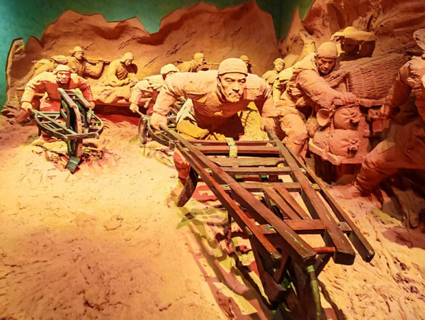 最令人动容的是“人民支援”展区。展柜里,一面打着补丁的独轮车车斗、一摞用粗布缝补的军粮袋,无声诉说着“人民是胜利的根本”。解说牌上的数据格外醒目:战役期间,支前群众共出动独轮车20多万辆、挑子3万多副,运送粮食近4亿公斤——正是这千万双手,筑起了支援前线的“生命线”,让胜利有了最坚实的根基。