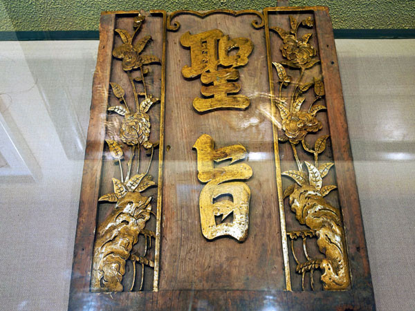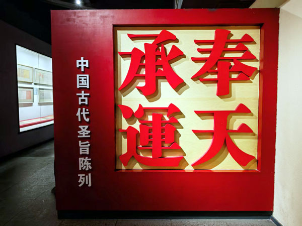 漫步馆内,其展出的各类藏品2000余件/套,令人叹为观止。主要分为《奉天承运》《蟾宫折桂》《其藏也周》三大专题。《奉天承运》收藏存世圣旨,有明清圣旨数十道;《蟾宫折桂》收藏科举资料;《其藏也周》收藏各类珍品,如西周青玉剑、西汉龙凤佩等。