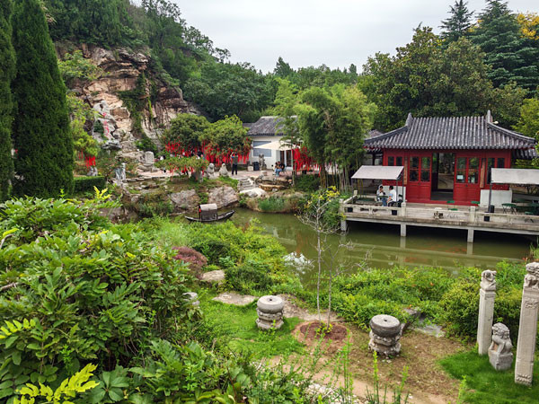 漫游园中,只见点石园依山就势,楼台亭阁高低错落,飞泉瀑布湍流直下,曲径通幽,小桥碧水,宝塔倒映,融合了江南园林的秀美和北方皇室园囿之雄伟,是南秀北雄风格完美结合的典范。
