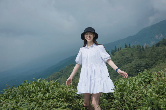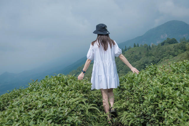 换身行头浸润在茶山中