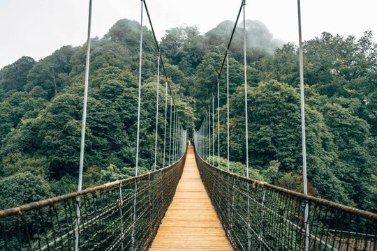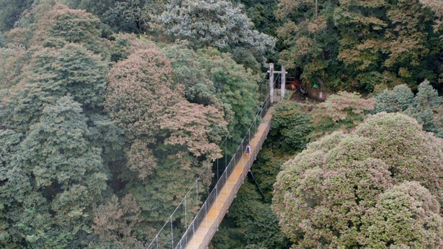 在无人机的视角下,大桥置身于密林之中,不失为一处秘境。