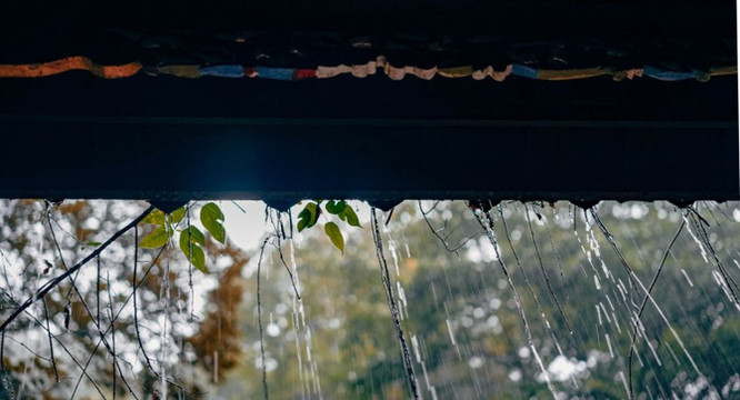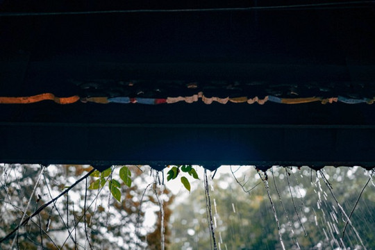 秋雨连绵的山间,抬头看屋檐滴水如涌泉,当疫情遍布世界,也唯有这山间之秋露与叶间之清泉还能保持纯净无暇吧。