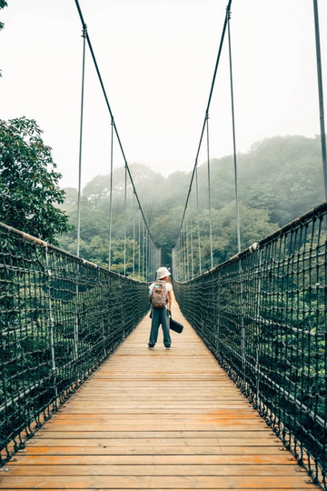 在园区正式入口处大概最显眼的也就是这座大桥了,两边被植被环绕,走进去反复置身密林之中,让人流连忘返。