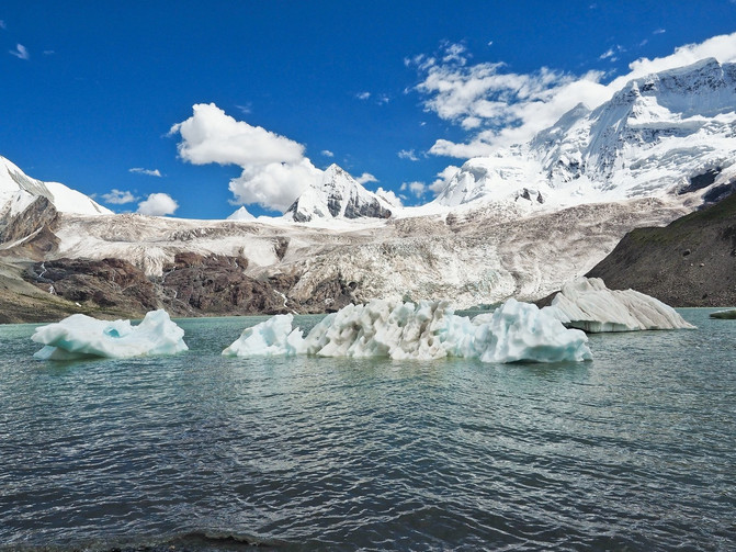 巍峨的雪山脚下,一汪碧湖,在阳光的照耀下波光粼粼。
