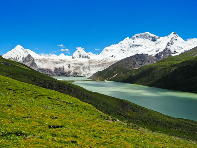 稀薄的空气,连绵的雪山,安静的湖泊。