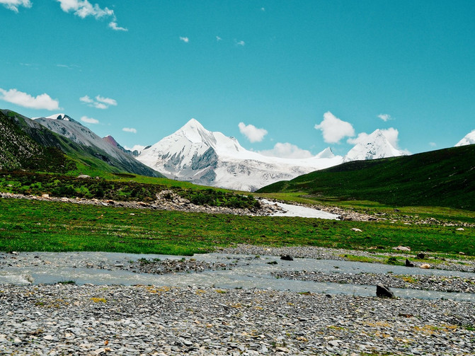 【D2时间线】 8:00从 那曲 出发,沿着藏北线317国道开始返程,到 丁青 县约476公里,行驶约8小时57分钟。这一天又是在路上昏昏欲睡的一天。沿途经过了很多山河、寺庙,在靠近布加雪山附近的加油站背后,有一座形如“布达拉宫”的寺庙,被称为“小布达拉宫”。如果时间充裕,可以花一个小时的时间去布加雪山看看。布加雪山是藏东最高的山峰,这里还有一个布加冰川,有5条句型悬挂冰川,还是世界上最密集的悬冰川。听说上面也有一个小湖泊。这里的景色一点都不亚于萨普神山。在布加雪山,山脚下有一个荣布镇瓦多嘎村的玉雄自然村,这里的藏村落,十分原始,没有现代气息,很适合拍照。