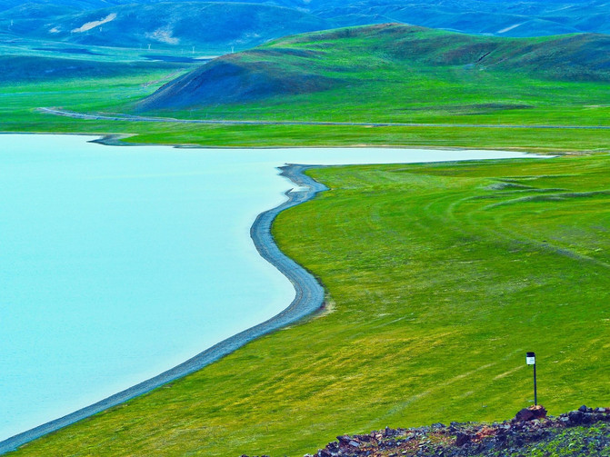 绵延百余里的草原上,牛羊成群。蜿蜒曲折的柏油路上,半日也难见几辆汽车驶过。这山、湖、草地,组成的绝美画卷,就这样静静地留在这儿,像是那古老传说中的秘境,亘古不变。