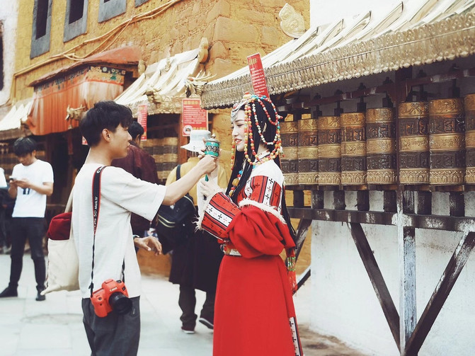 走进圣城 拉萨 ,三五步就可以看到虔诚的朝拜者,五六步就听到转经筒的“叮铃”作响,七八步就能闻到浓香四溢的酥油茶........城市中大街小巷里商品玲琅满目,南来北往的商旅人群络绎不绝,一一派繁荣景象。城野外的山水风光旷绝一世。异草奇花铺山崖,藏居群中隐古寺。万仞冰川直耸天,峰谷危崖披彩带。碧湖倒影雪山巅,风吹草低现牛羊。