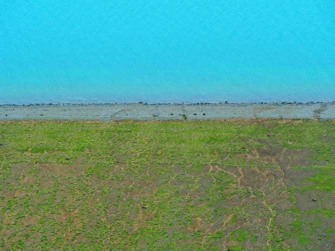 湖畔的戈壁上,有着斑驳瑟瑟的绿藻地,这是风雪留给大地最美的浅记。