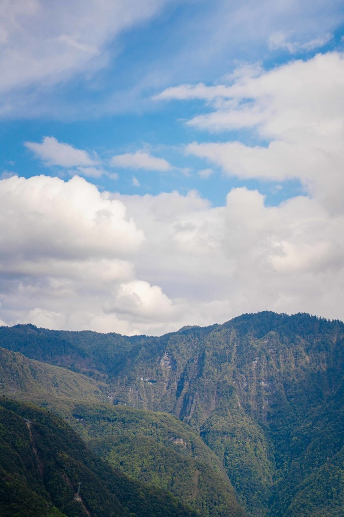 站在这里可以俯看大坪,一眼望出去茫茫云海在山间翻滚,天际边苍茫雪山一字排开,背后则是一望无际的原始森林。雪山、云海、蓝天、草甸、松林,大自然在这里布下了立体的景观,在光影的雕琢下一切变得玄幻,碰上好的天气,随便一拍,就能拍出美美的大片。