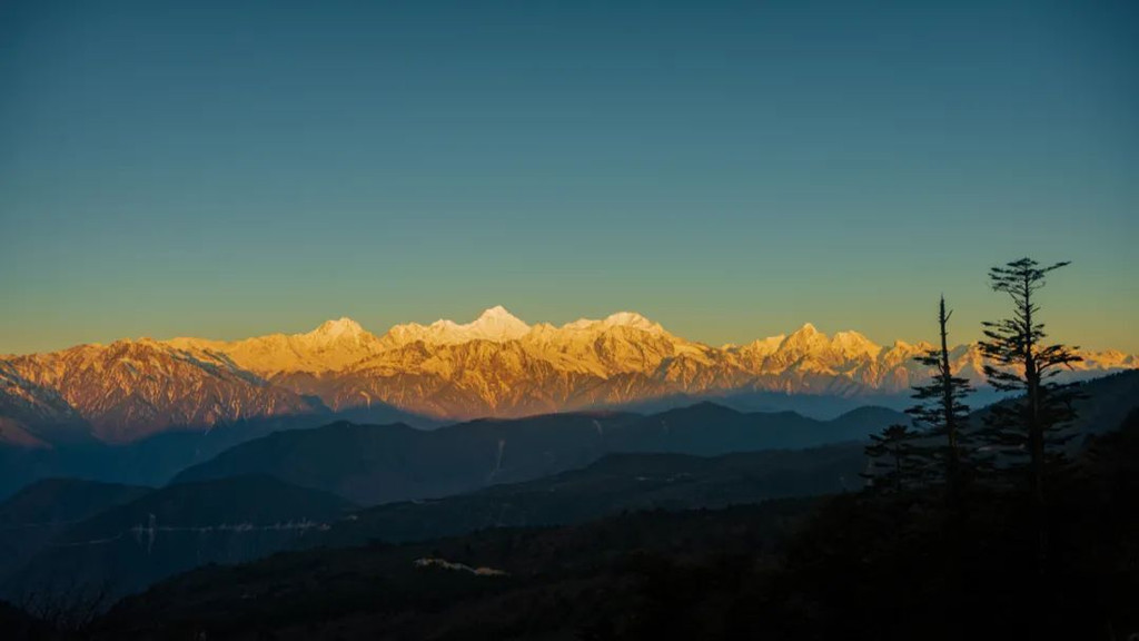 贡嘎雪山位于四川盆地边缘,藏语中,“贡”为雪,“嘎”为白,“贡嘎”在藏语里就被翻译为“洁白无瑕的雪峰”。王岗坪有一个欣赏贡嘎雪山的绝佳位置——曜雪台,它正对贡嘎群山,据说在这里全年可观看贡嘎雪山的时间超过200天。所以,你要有多不幸运才能撞见剩下的时间!
