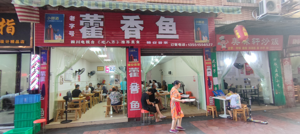 雅安廊桥附近的藿香鱼馆,藿香鱼非常好吃。