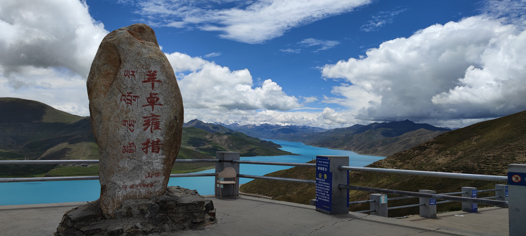 羊卓雍措在山南市,前往需要翻越高山,弯道多,车也多,要注意行车安全。过山南地区检查站右侧有景区售票处,每人60元(这个可以省的,后来在几个停车区观景台也没有查票),可以不进入直行前往羊卓雍措。