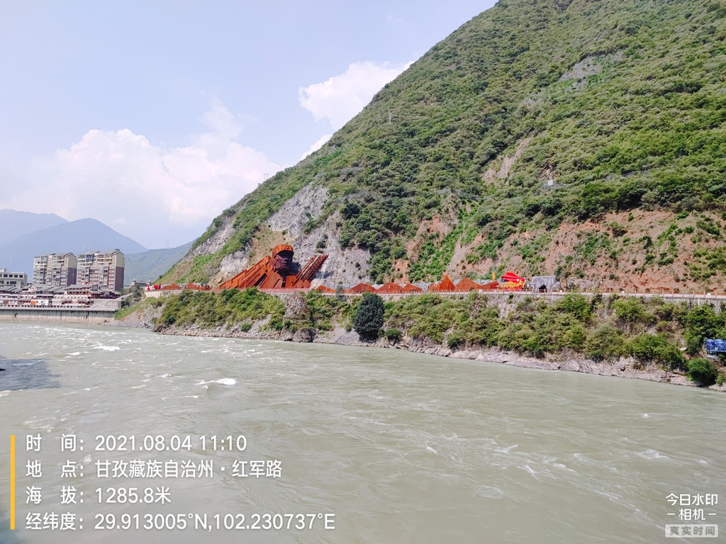 这一天都在高山和峡谷中穿行,长途跋涉很辛苦。出巴塘县快到金沙江大桥时有一段路在修,非常难走,轿车通过困难。海通沟还是在修路,很长一段是砂石路,总体路况很好,车也少。觉巴山路段非常险峻,一直在高高的半山腰上行驶,下面看不到底,很多转弯地方没有护栏,路面窄会车困难,停车区非常少而且简陋,有的路段在施工,非常难走。不过,看到很多地方正在修隧道,今后行驶在这段路应该没有这么危险了。