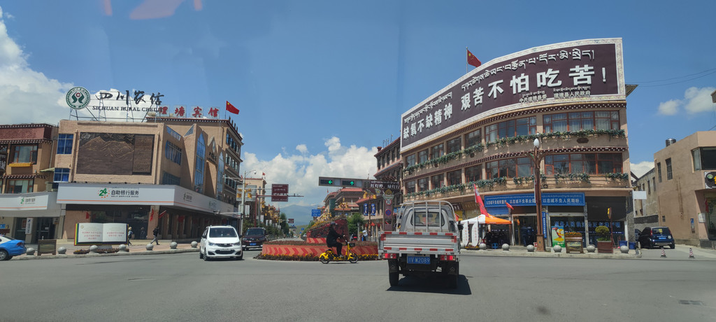 第四天,理塘县到稻城亚丁景区,经过稻城县城、稻城白塔、兔儿山,在G227线行车6个小时。(住香格里拉镇,海拔2900米)