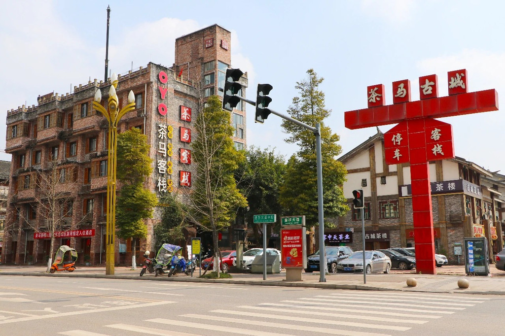 说到赏景,雅安还有一个好去处,那就是茶马古城。茶马古城位于世界茶文化发源地蒙顶山脚下,这里原名叫蒙顶山槐溪坝火烧桥,据雅安市政协副主席李毅先生考证,古代川藏茶马交易就在这里进行,这里是川藏茶马古道的起点,从唐代开始川藏茶马交易就在这里。而现在,这里是中国绿茶的最大交易区,中国藏茶之乡,交易比之以往更加繁荣。当然这里不仅有繁荣的交易,它的风情也是令人赞叹不已。