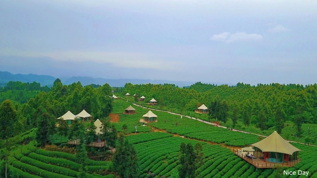 茶园里面有帐篷酒店,房间非常大,360度的观景房间,房间外面还有大阳台,可以看到整个茶园,观景感非常好。