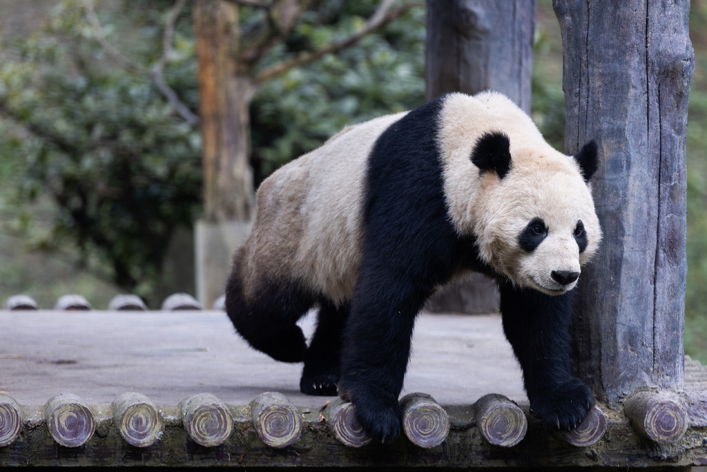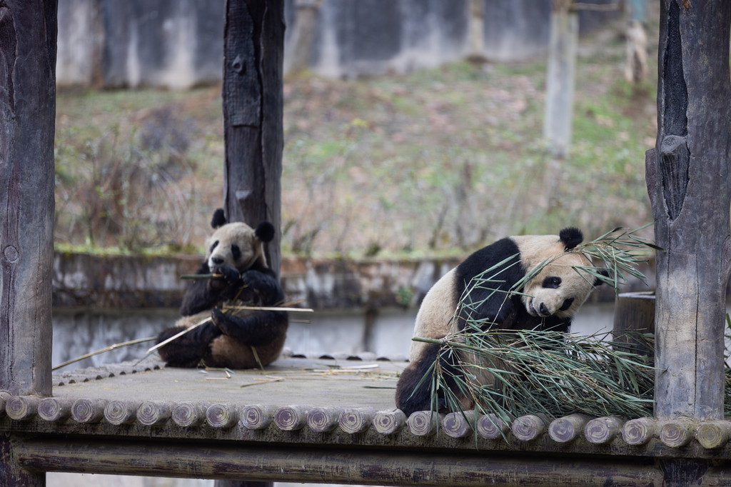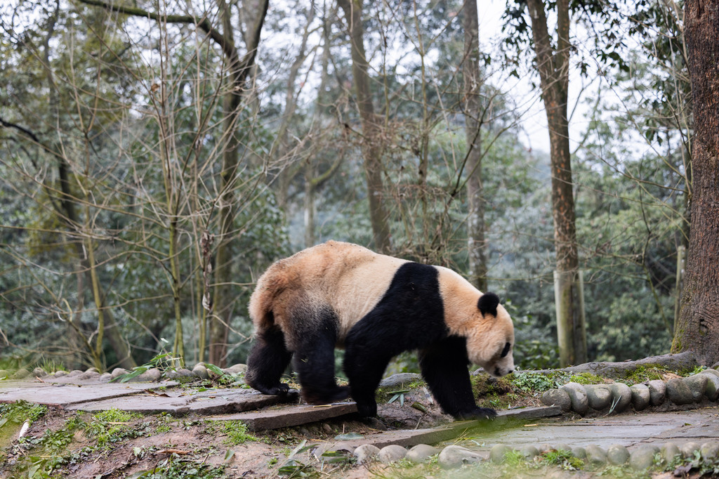 观光车在每一个园区都设有上下车点,方便游客自行选择观看熊猫,这些熊猫确实好可爱,一个个胖嘟嘟的,吃竹子吃得津津有味。如果没吃竹子了,那必然就是蜷成一团将脑袋捂在身下睡大觉的,绝对是怎么看怎么治愈,越看越开心。