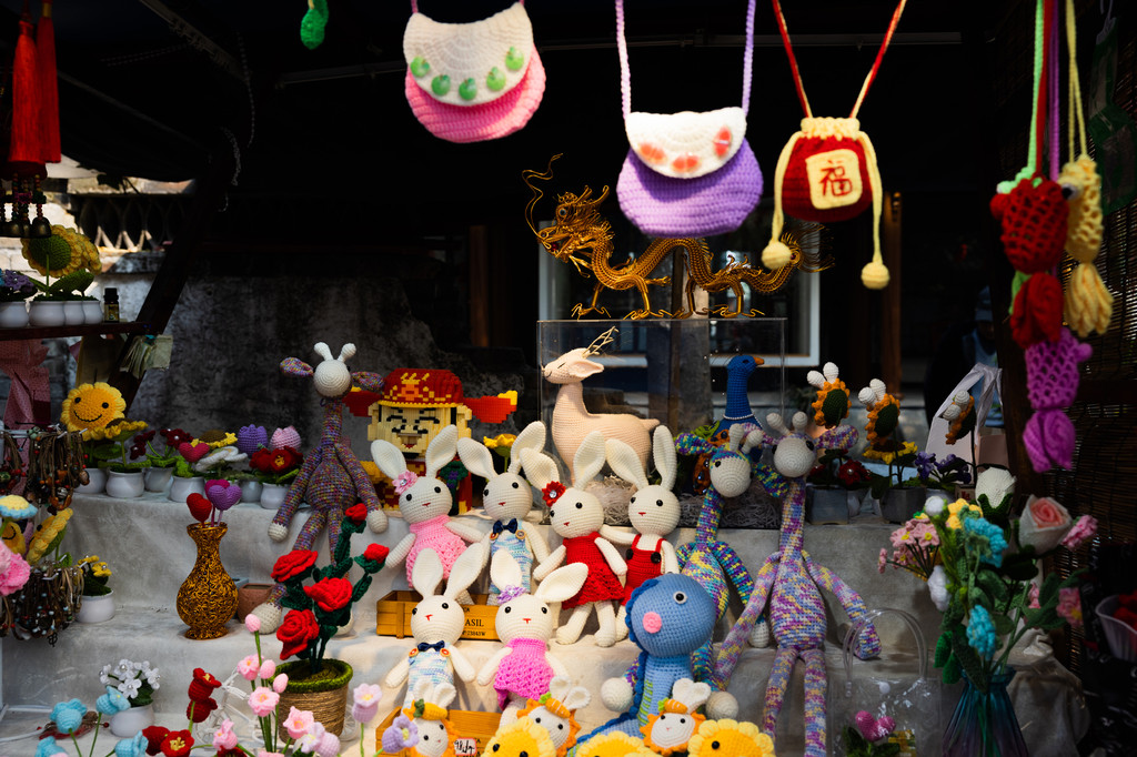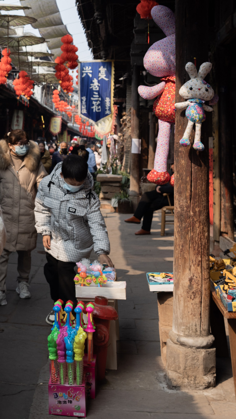 今年是兔年,路边装饰和摊位上售卖的商品有很多和兔子相关,城内的河道可以坐游船,城外的江上可以坐快艇。可能是因为人多,走完一圈,感觉没多大意思,既没看到好的景色,也没感受到古镇的历史氛围,除了人从众的游客,就是不绝于耳的各种吆喝叫卖声。