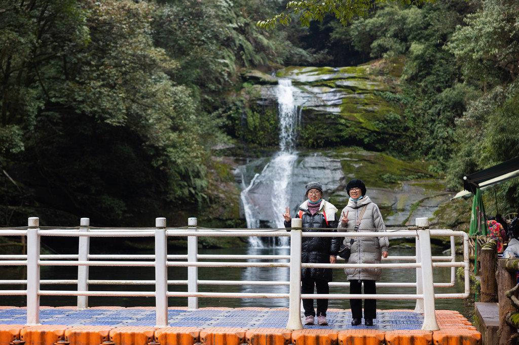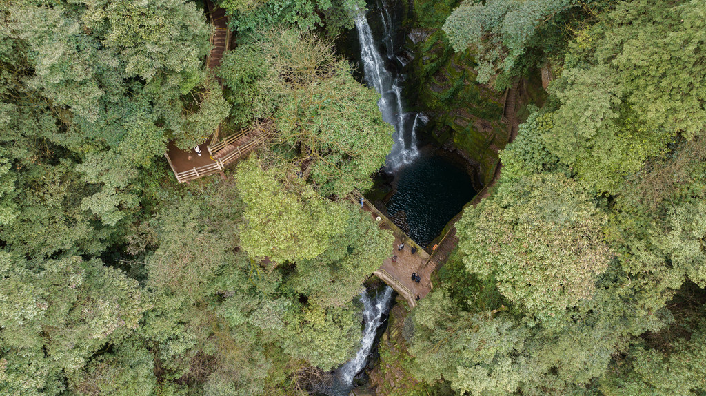 随后进入峡谷景区,我们选的走大环线,约7公里山路,可以从坐观光车上来这边入,峡谷电梯口出,也可以反过来从峡谷电梯口出,坐观光车这边出。我们是从坐观光车这边上同进入,一路大多是下坡,走得还算比较轻松,只是这名气偌大的一个景区,沿途可观赏的景点乏善可陈。除了白龙河潭瀑布稍有看头外,其它真没啥看的了,赶邻水大峡谷差得就不只十万八千里。
