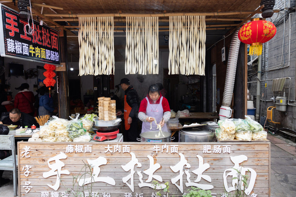 在柳江古镇可以感受到深厚的历史文化底韵,景色也清新脱俗,值得一游。我很想在这里小住几天,过一下古镇上的慢时光,无奈这次时间匆忙,只能小驻片刻便又奔赴下一个地方。镇上的挞挞面、藤椒鸭特别美味,到现在想起来还是口舌生津。