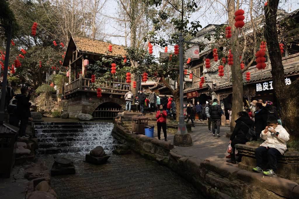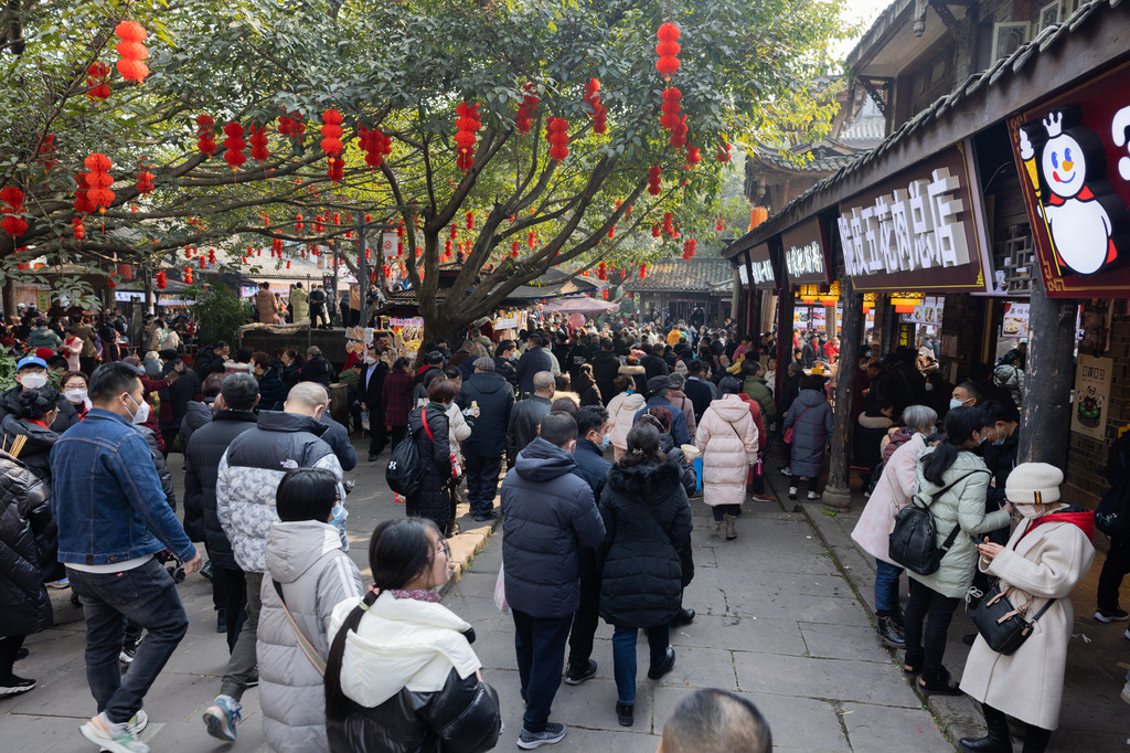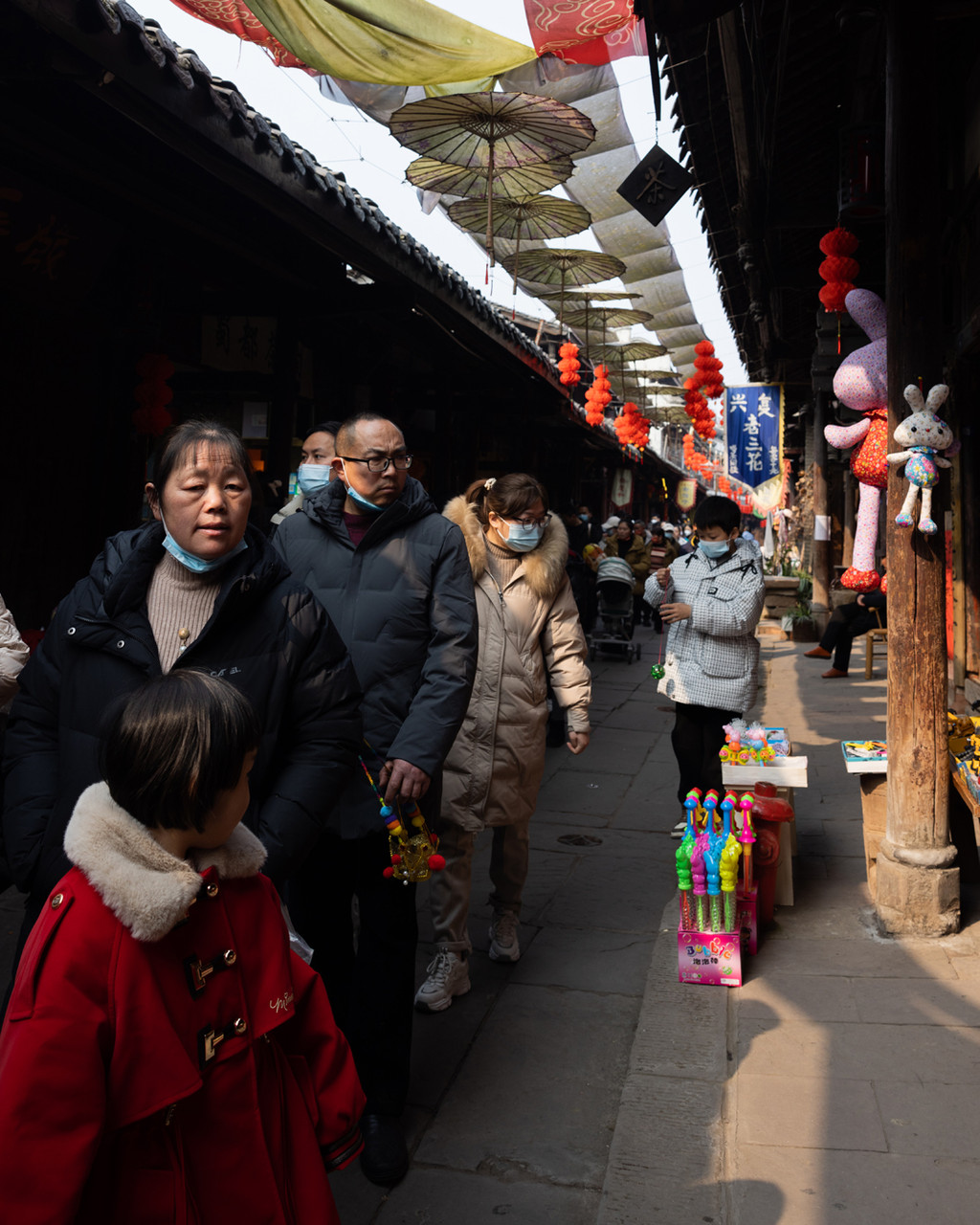 本以为初一出行的人应该不多,很多人在度过大年三十的狂欢夜后,应该好好在家修整一天。没想到了黄龙溪后,已经是人从众,偌大的古镇,每条街每条巷子几乎都挤满了人,走在路上一个接一个摩肩接踵,将这小镇变得热闹无比。