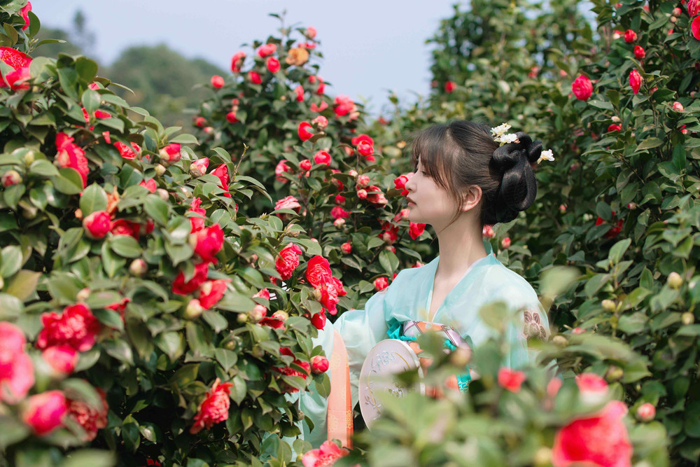 温润多雨的雅安,云雾缭绕的茶山,仙得就像一首清冷的诗,清冷得就像那天杨过初遇小龙女,素衣如雪,幽冷之极,尤似在烟中雾里撩拨他心间的泠泠七弦琴;你看啊,茶山上炸开的山樱,在空气中抖落浅淡的诗痕,恍惚间又看到当年那个赵灵儿,雀跃欢欣地奔向心上人,黄衫少女璀璨的笑颜,比春天的花朵还闪耀;而那蒙顶山上盛开的千亩山茶花啊,轰轰烈烈纵情到荼靡,或许能读懂姬别霸王的艳与寂,那样决然深情的赴死,竟如此契合山茶的花语——理想之爱。