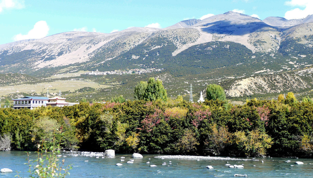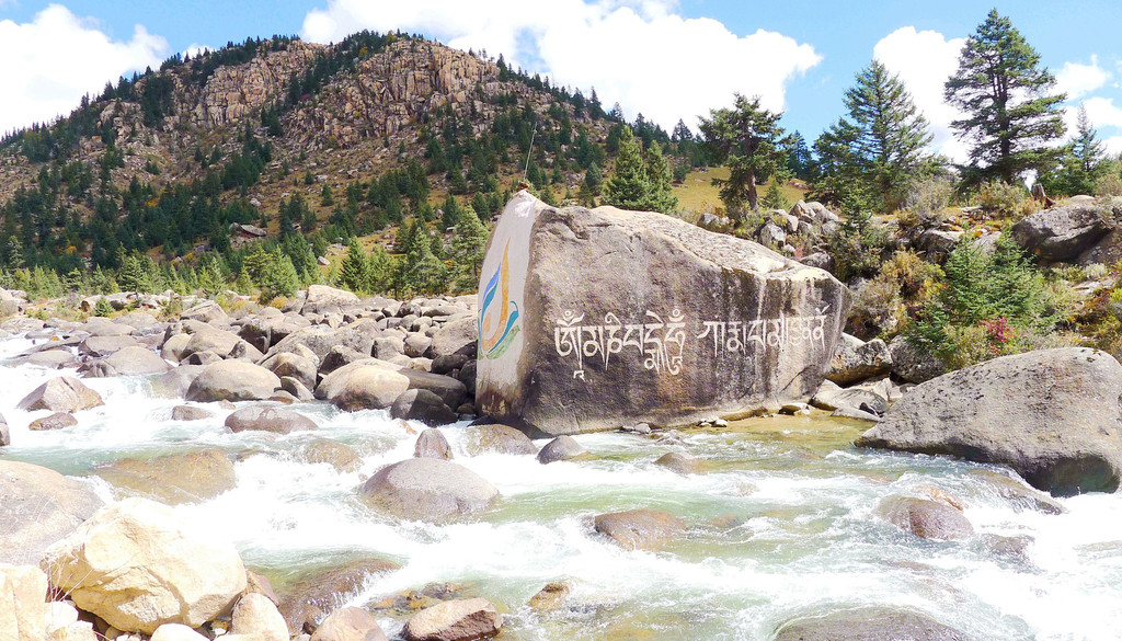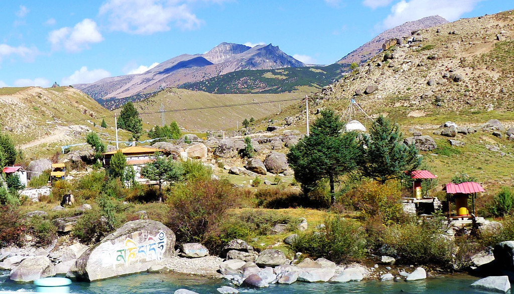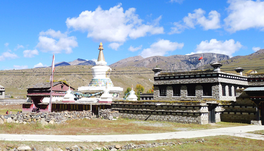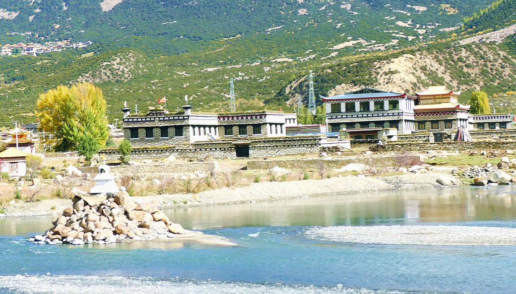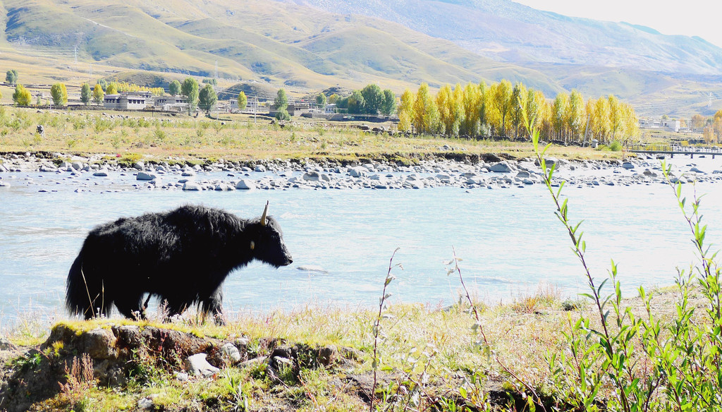 继续沿小河溯流行驶,沿途景色绮丽,既有佛塔、藏舍,也有小桥流水、田园、牧场,让我想起十多年前尚未大肆商业开发的“新都桥摄影家天堂”。